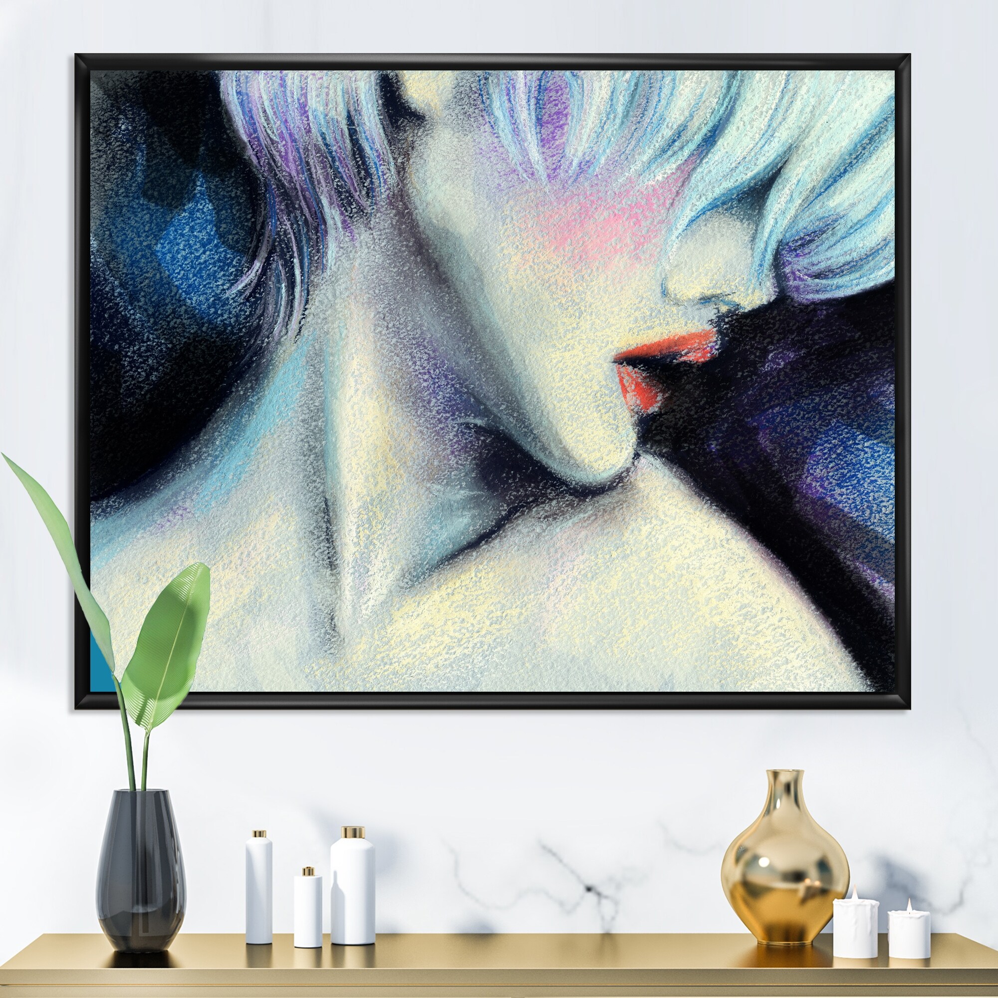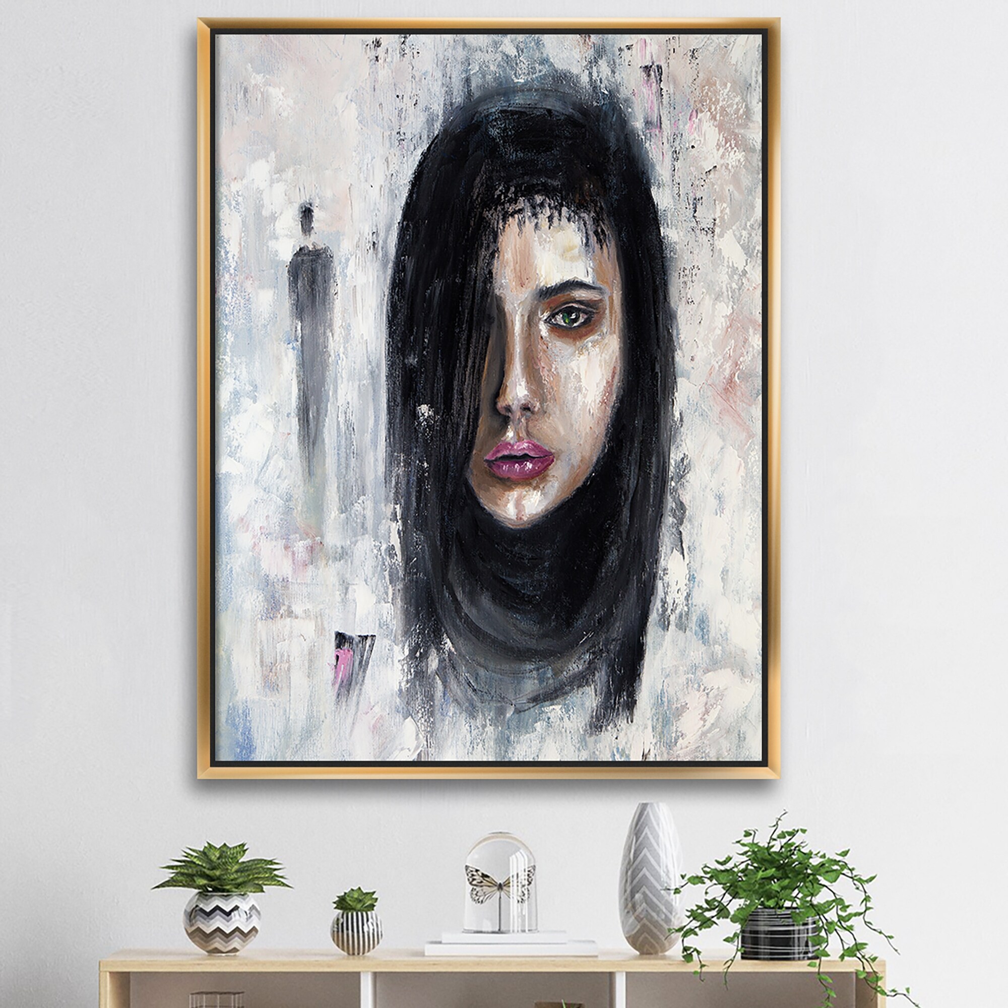 Designart "Female Acrylic Portrait Iii" Fashion Woman Framed Canvas Wall Art