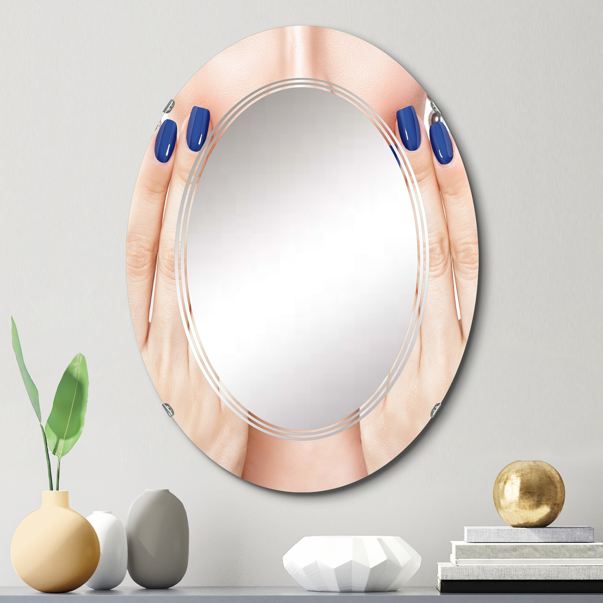 Designart 'Woman With Blue Lips Touching Her Lips' Printed Glam Wall Mirror
