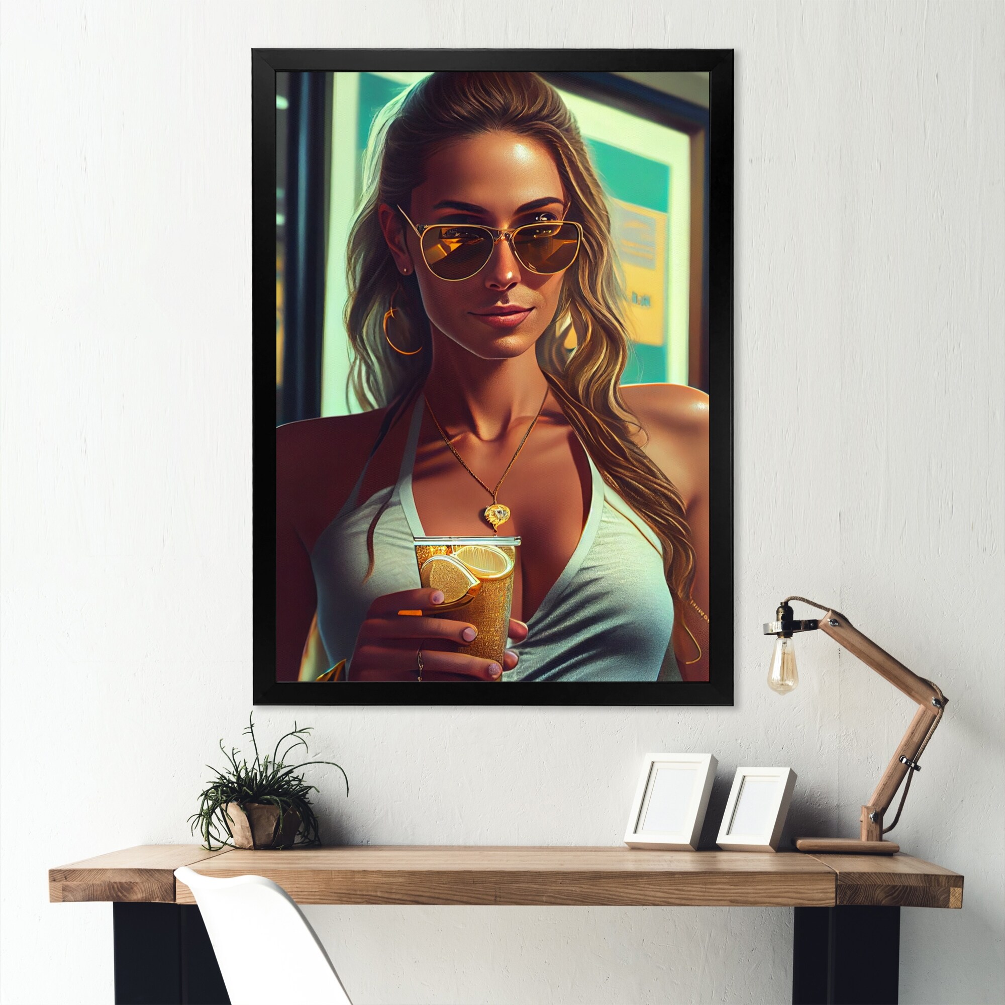 Designart "Colorful Tropical Woman Portrait III" Contemporary Glam Framed Art Print