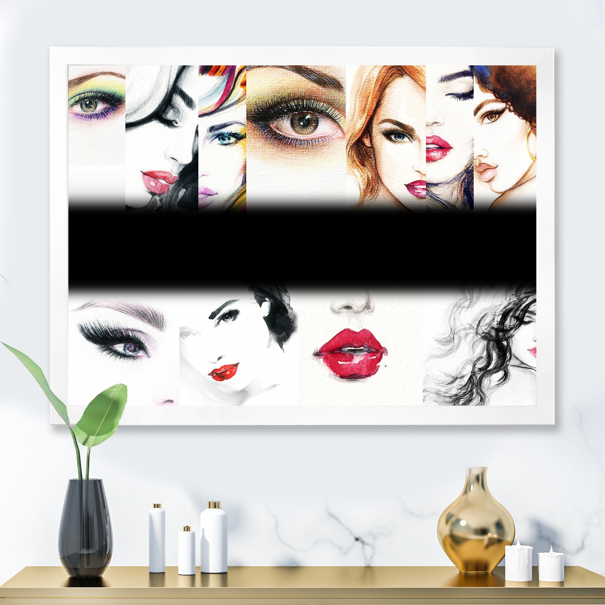 Designart "Collage Of Fashion Woman Faces" Glam Framed Art Print