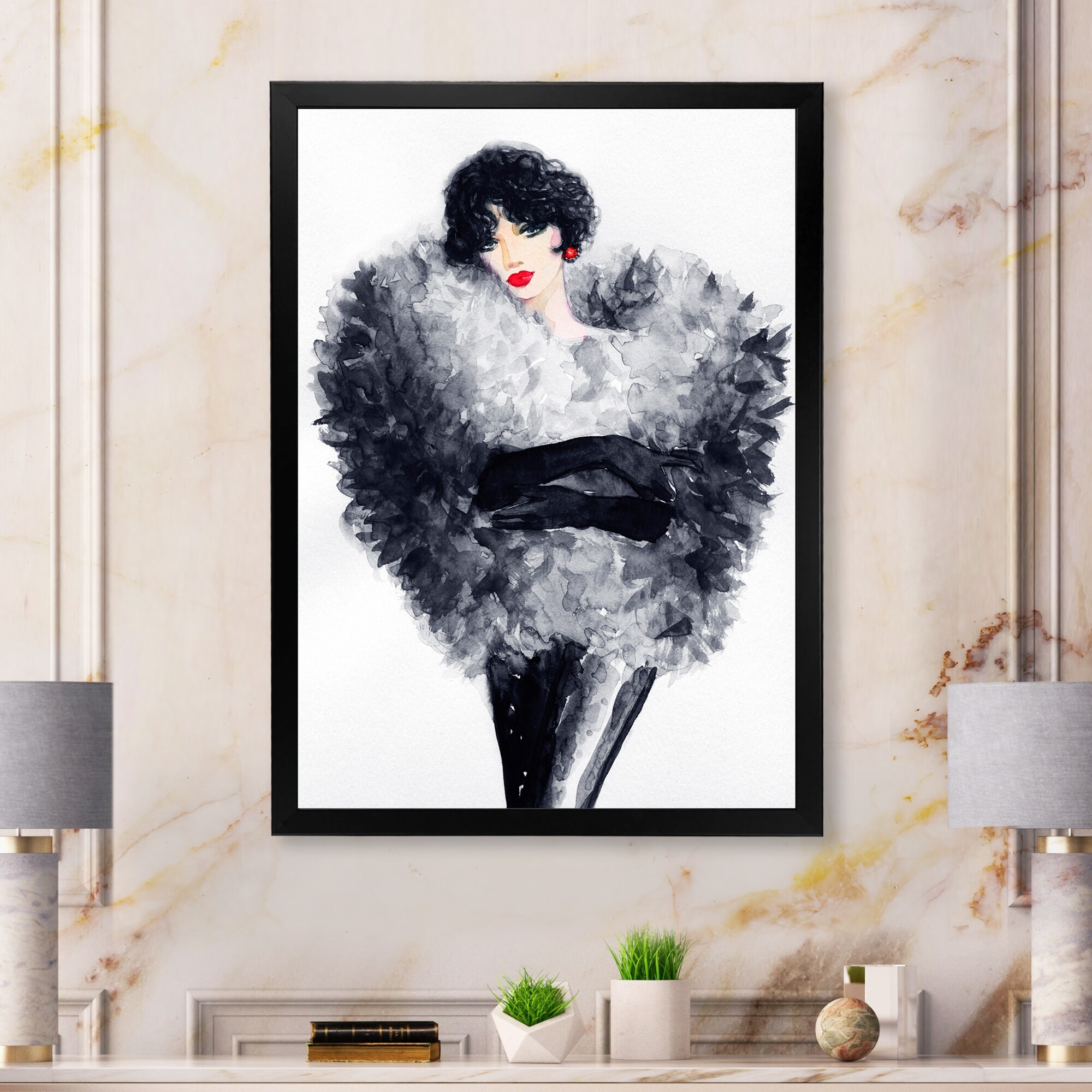 Designart "Elegant Fashion Woman VII" Glam Framed Wall Art