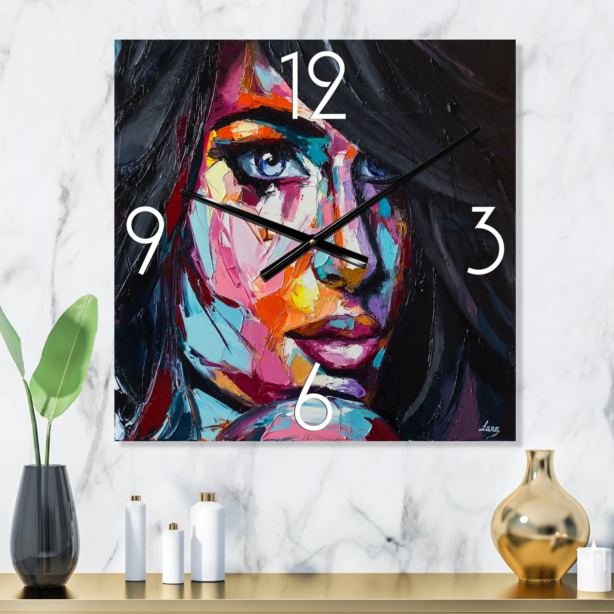 Designart 'Colorful Fantasy Portrait of a Young Woman II' Modern Metal Wall Clock