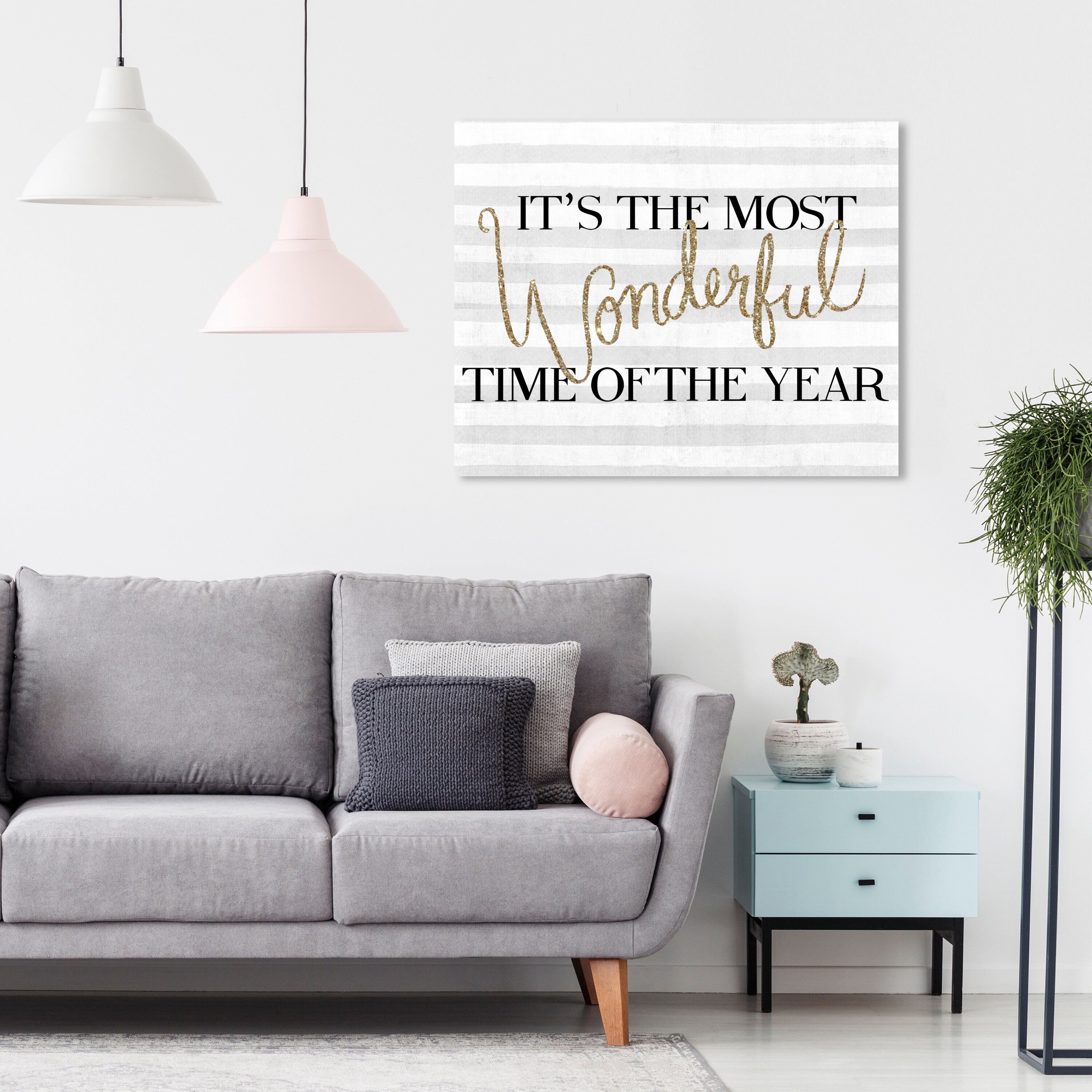 Oliver Gal Holiday and Seasonal Wall Art Canvas Prints 'Wonderful Time Glitter' Holidays - Gold, White