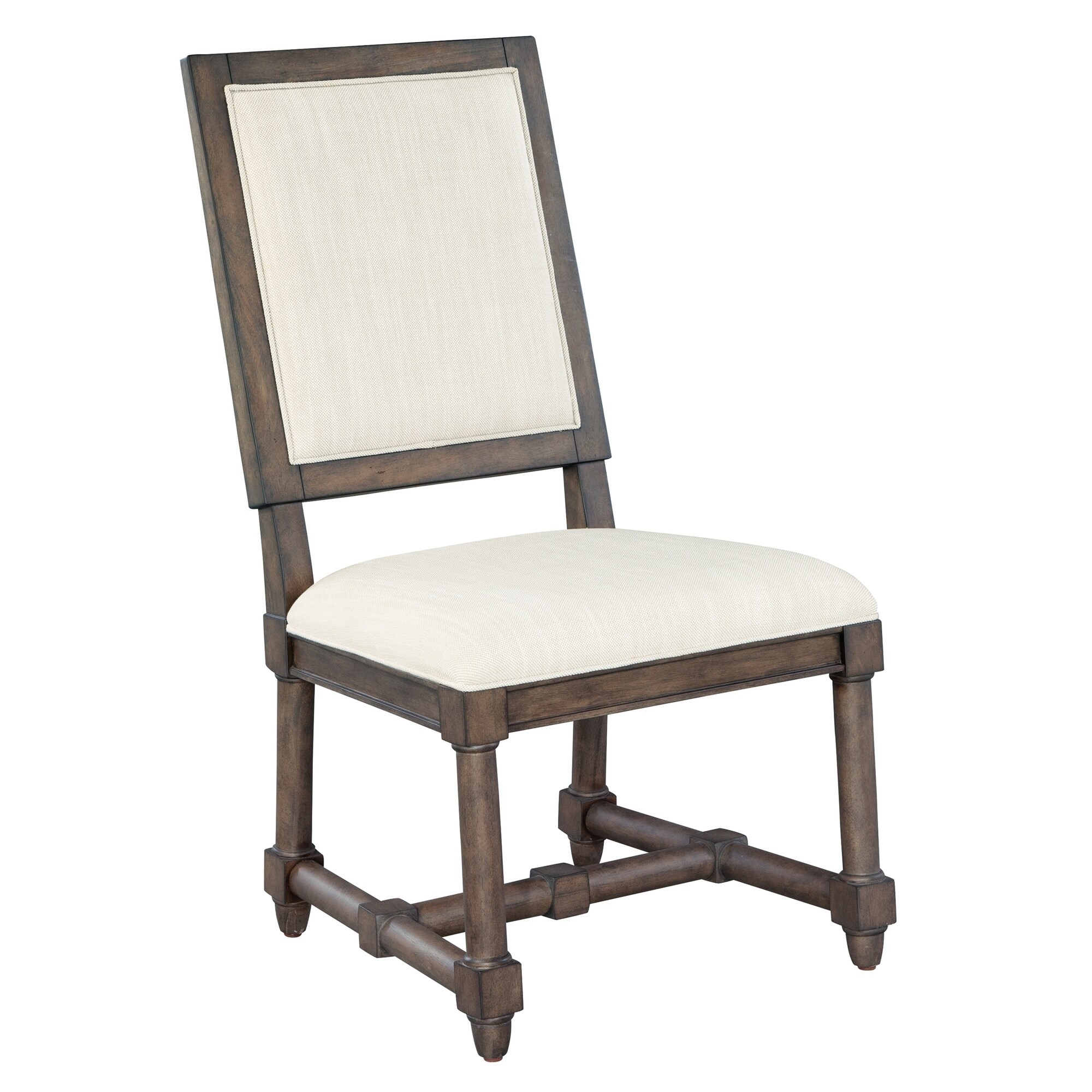 Brown Wood and White Linen Upholstered Dining Side Chair