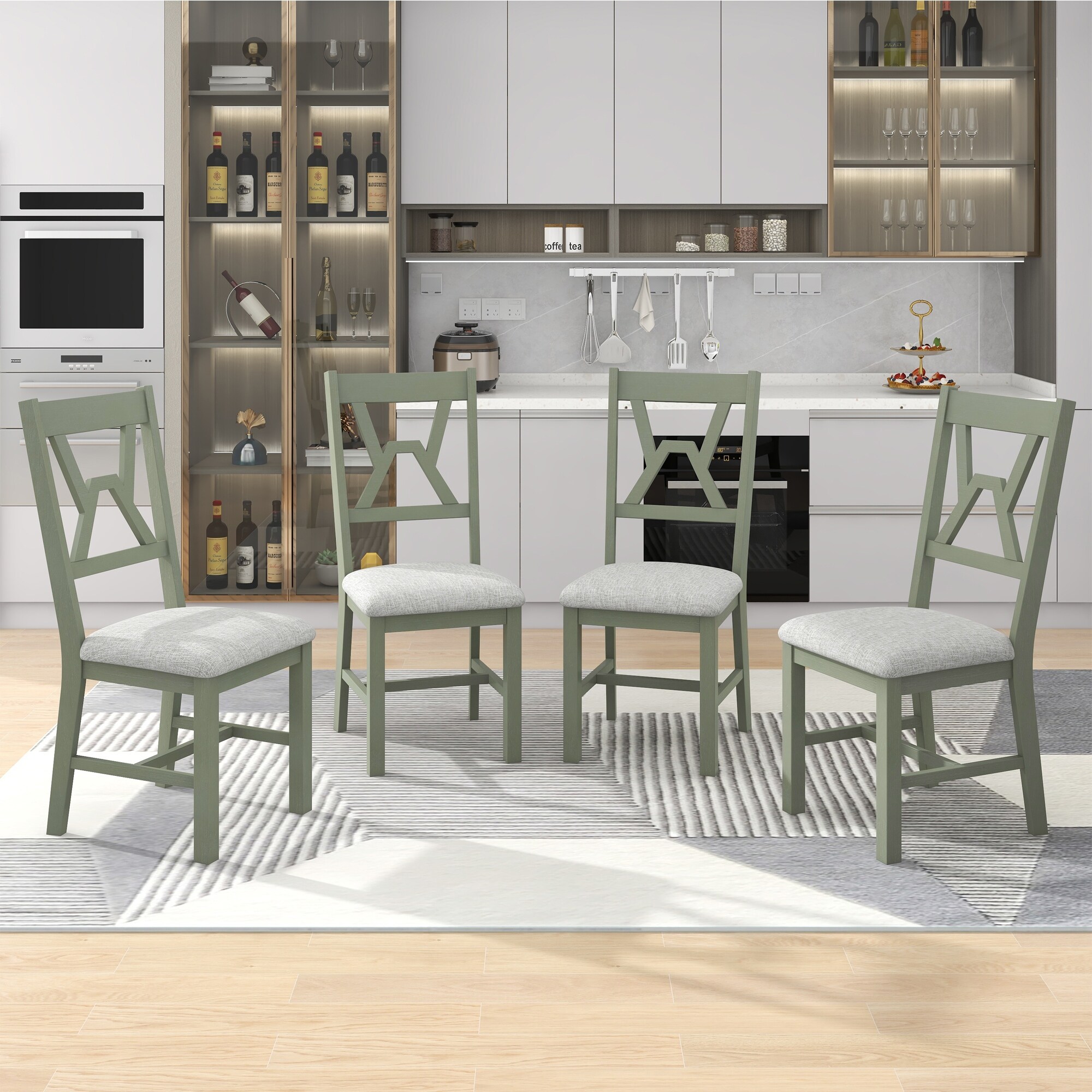 4-Piece Kitchen Wood Upholstered Chairs for Small Places, Green