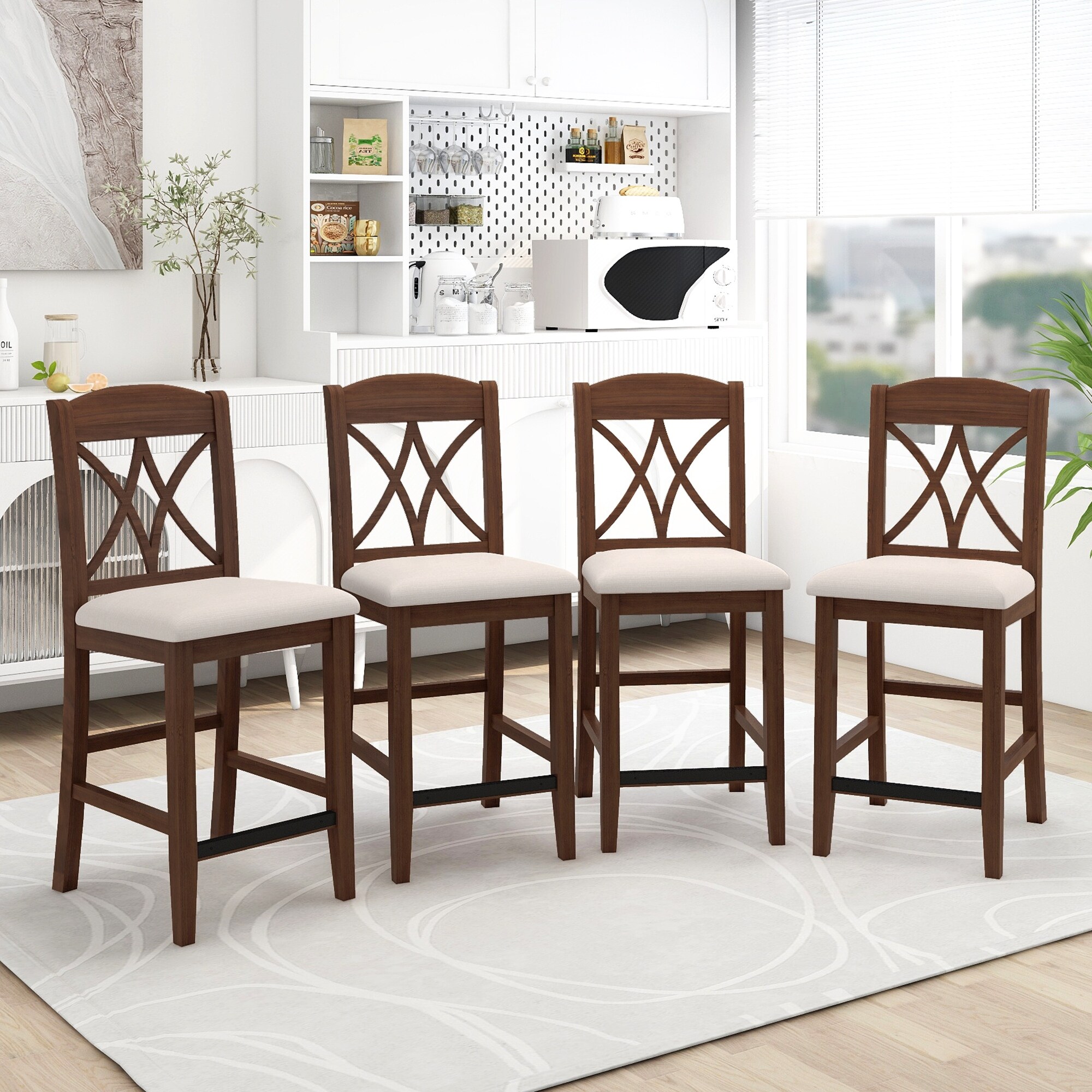 JASIWAY Counter Height Wood Dining Chairs with Cross Backs (Set of 4)