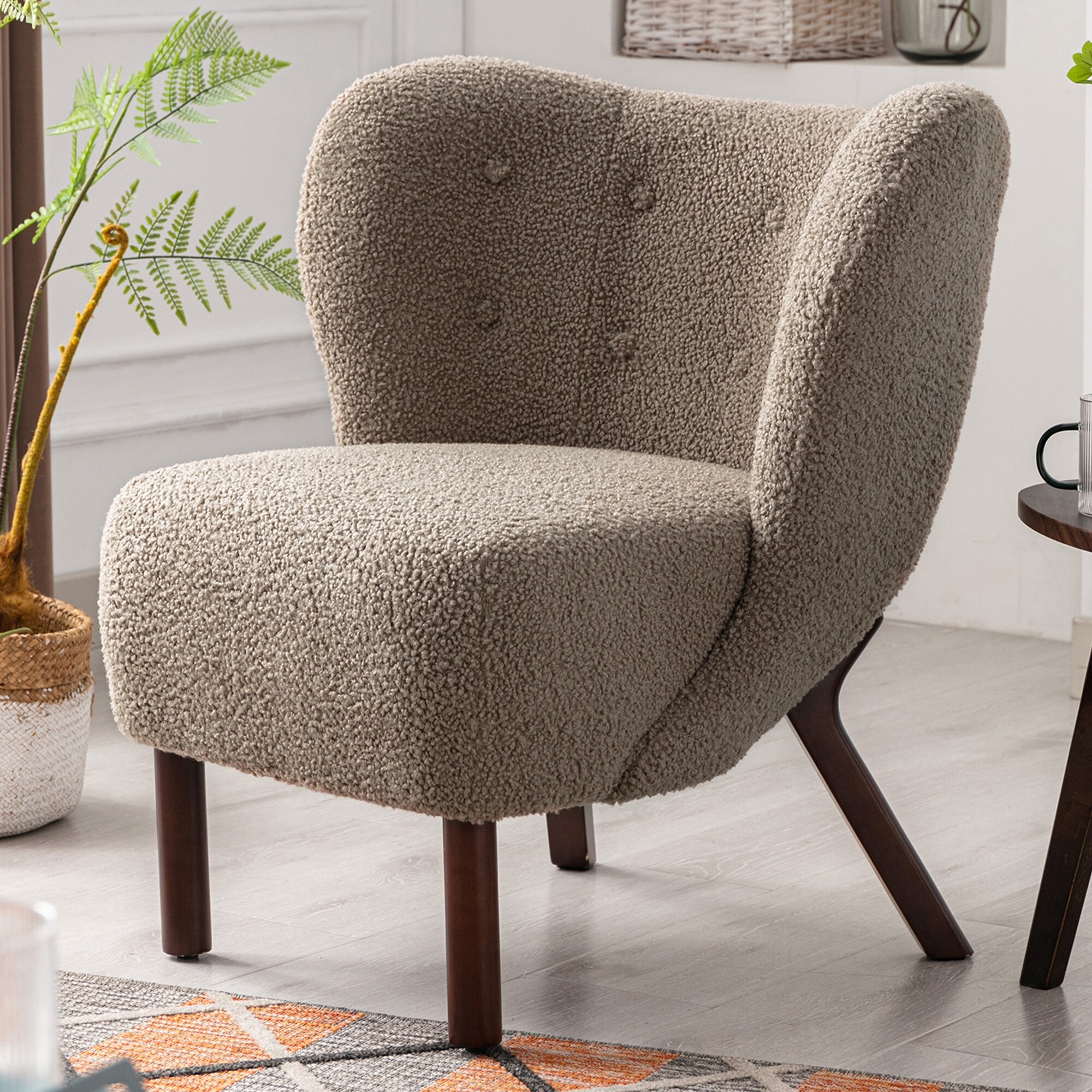 Accent Chair Lambskin Sherpa Wingback Tufted Side Chair with Solid Wood Legs