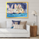 Designart "Three Fluffy Rabbits Behind A Blue Wooden Fence I" Traditional Framed Art Print