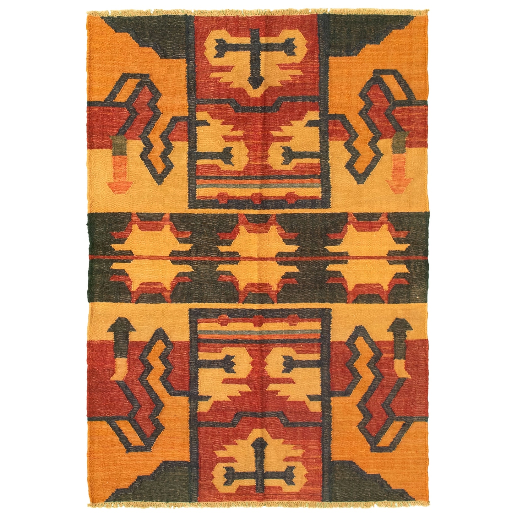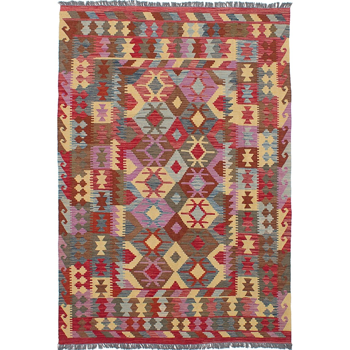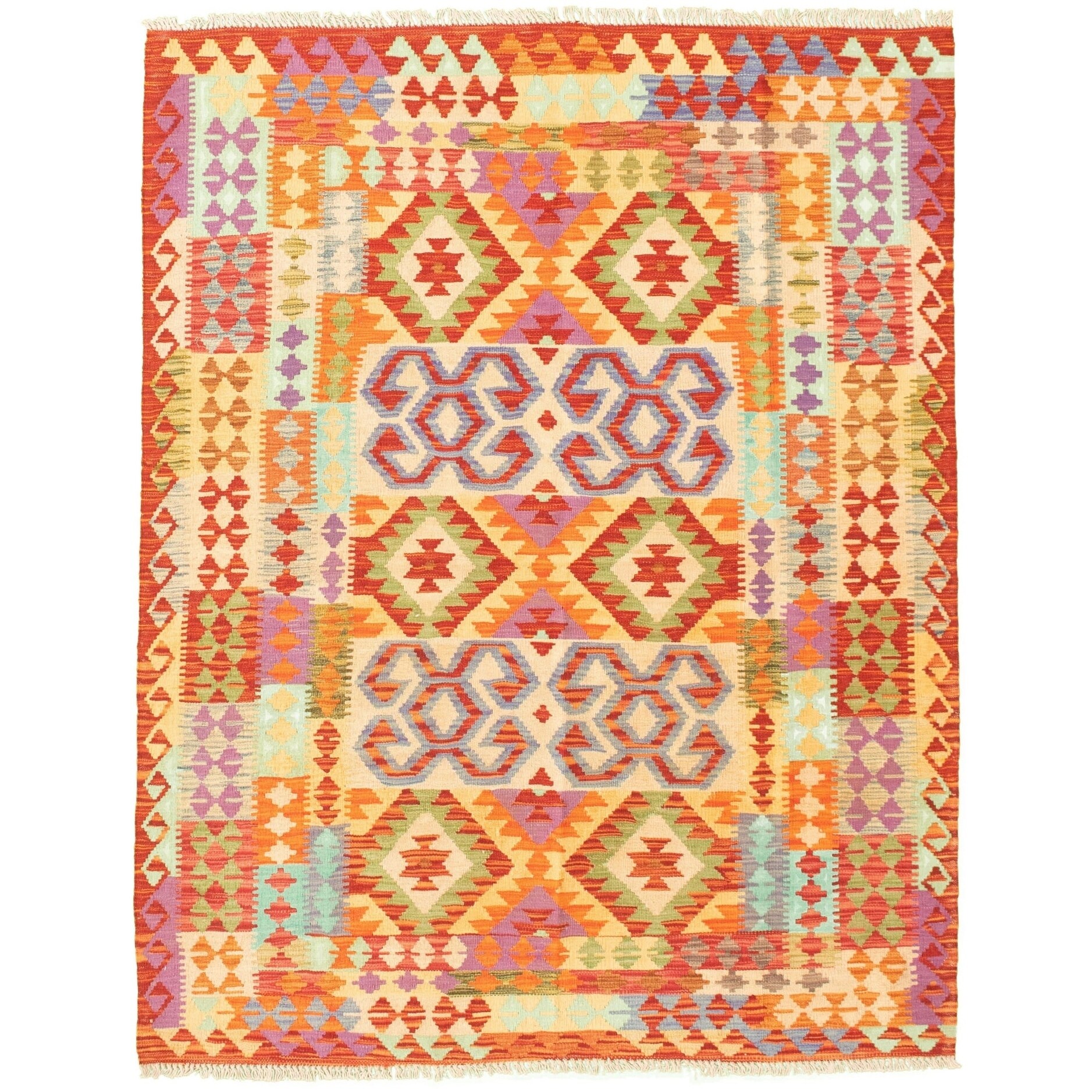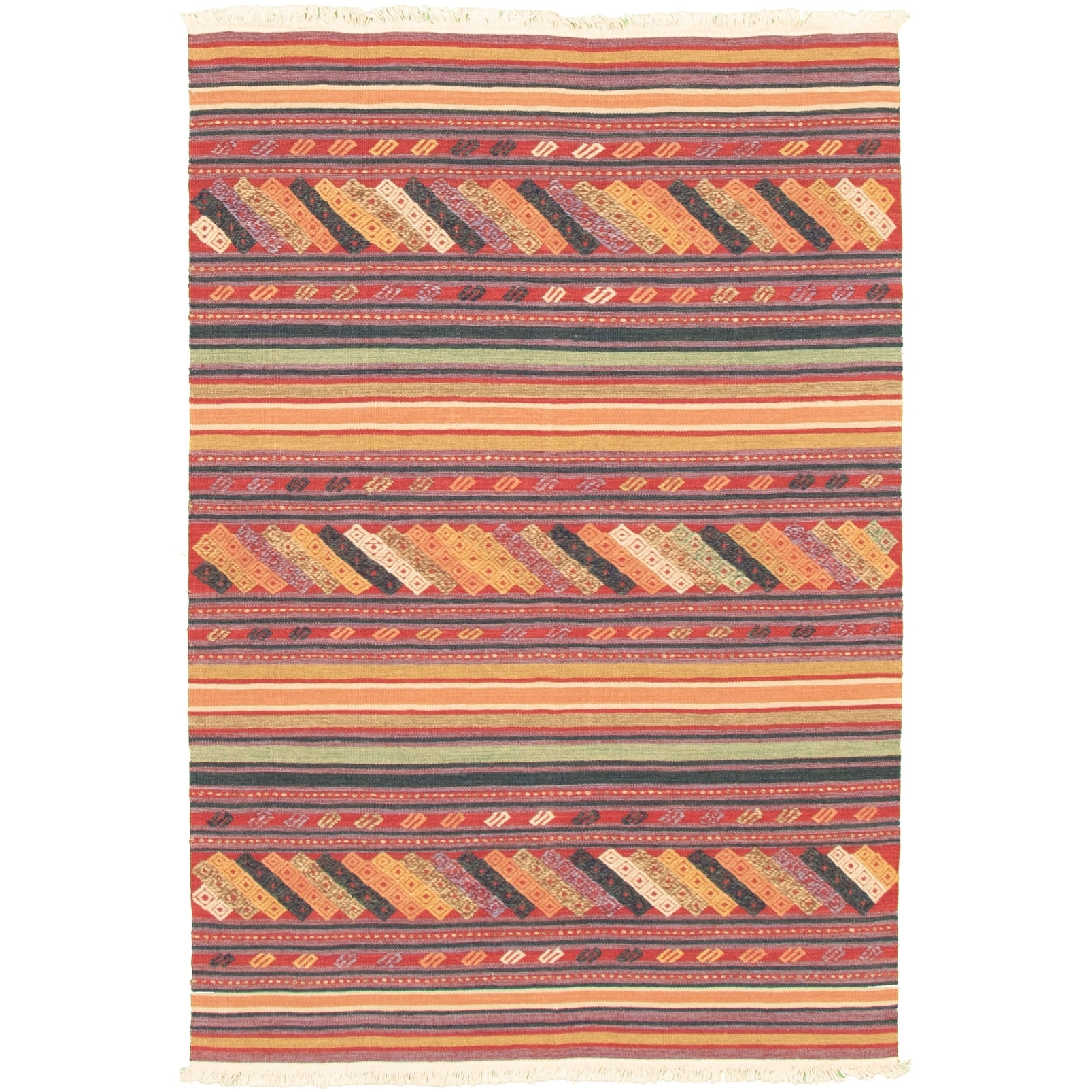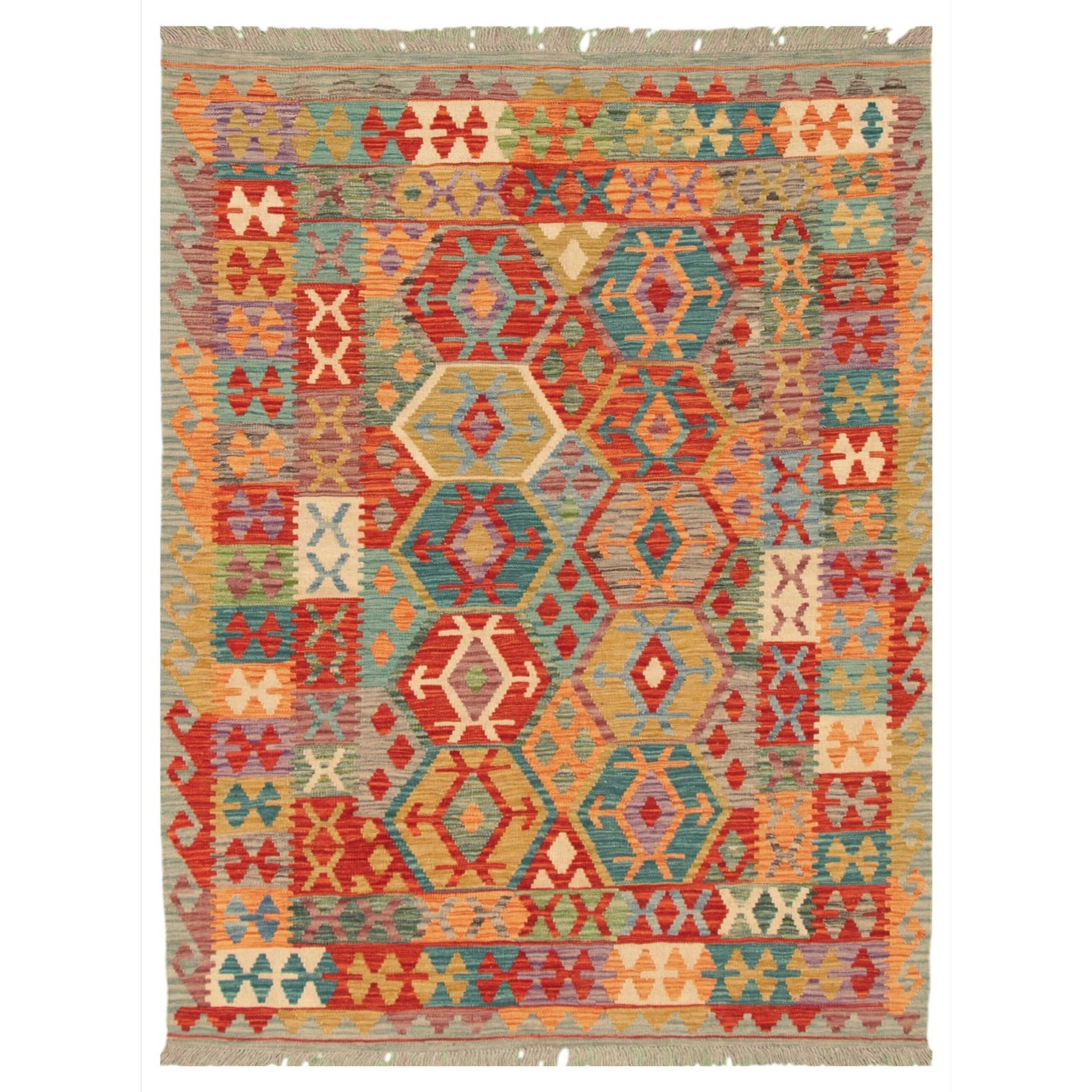 ECARPETGALLERY Flat-weave Bold and Colorful Multi Color Wool Kilim - 4'11 x 6'6