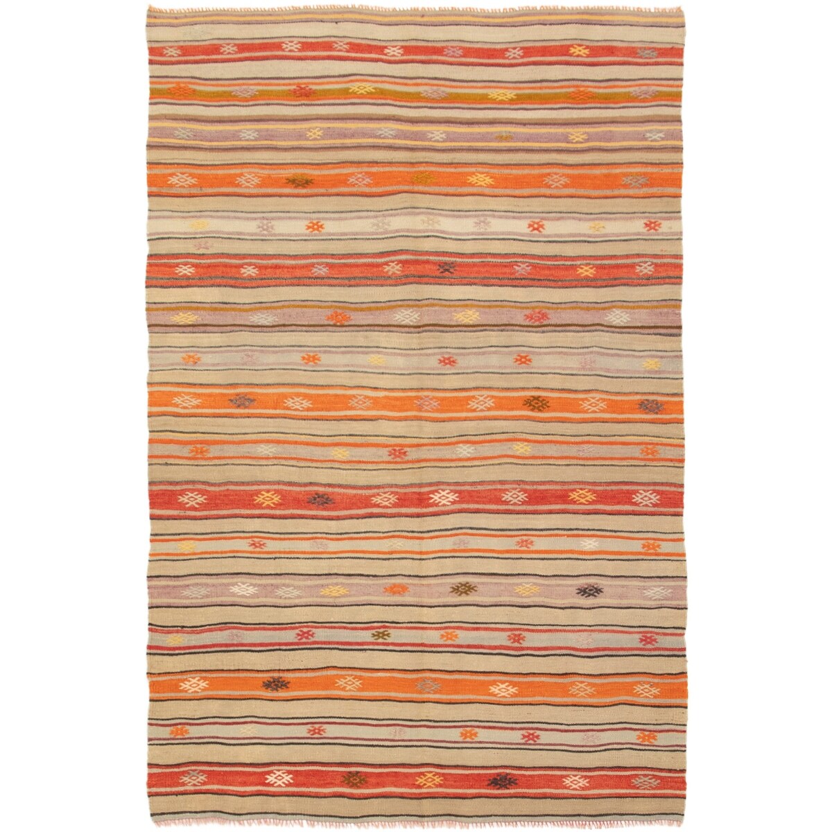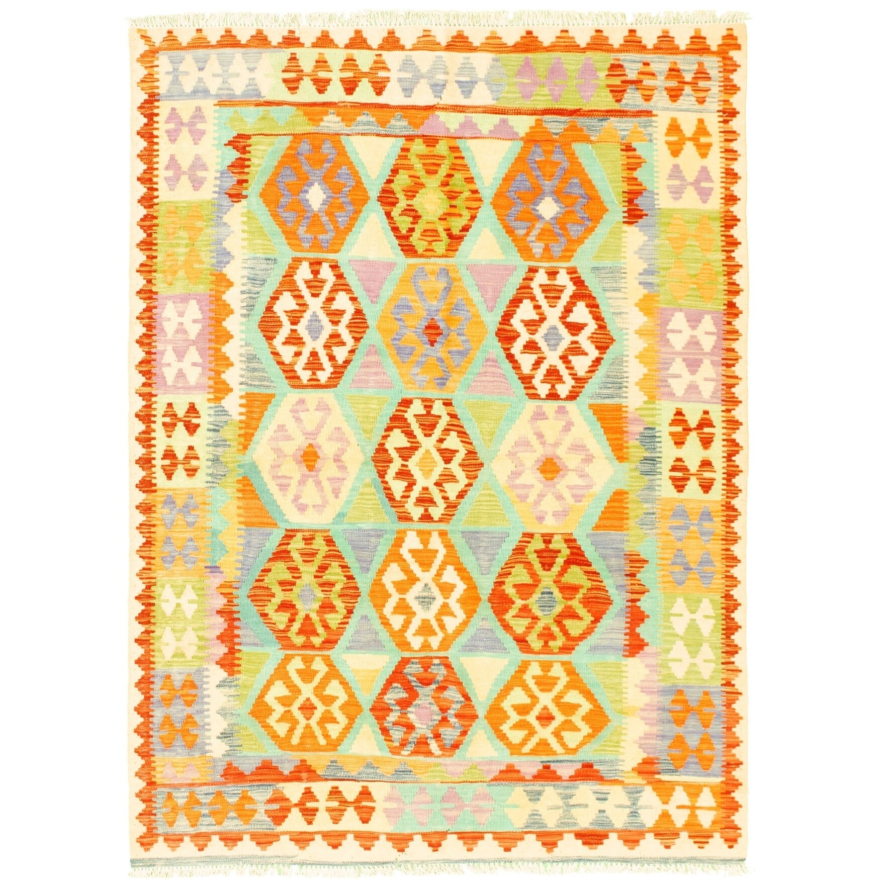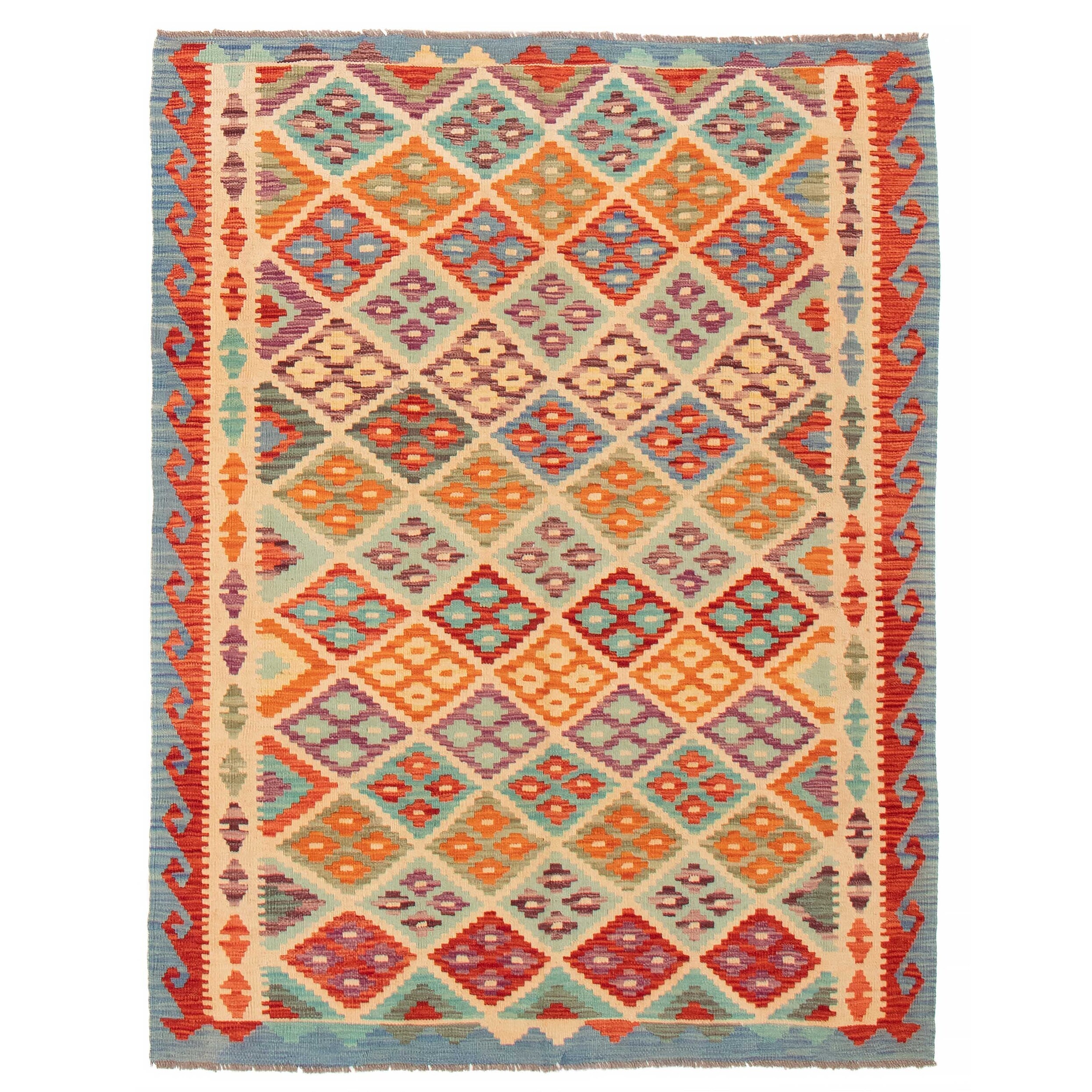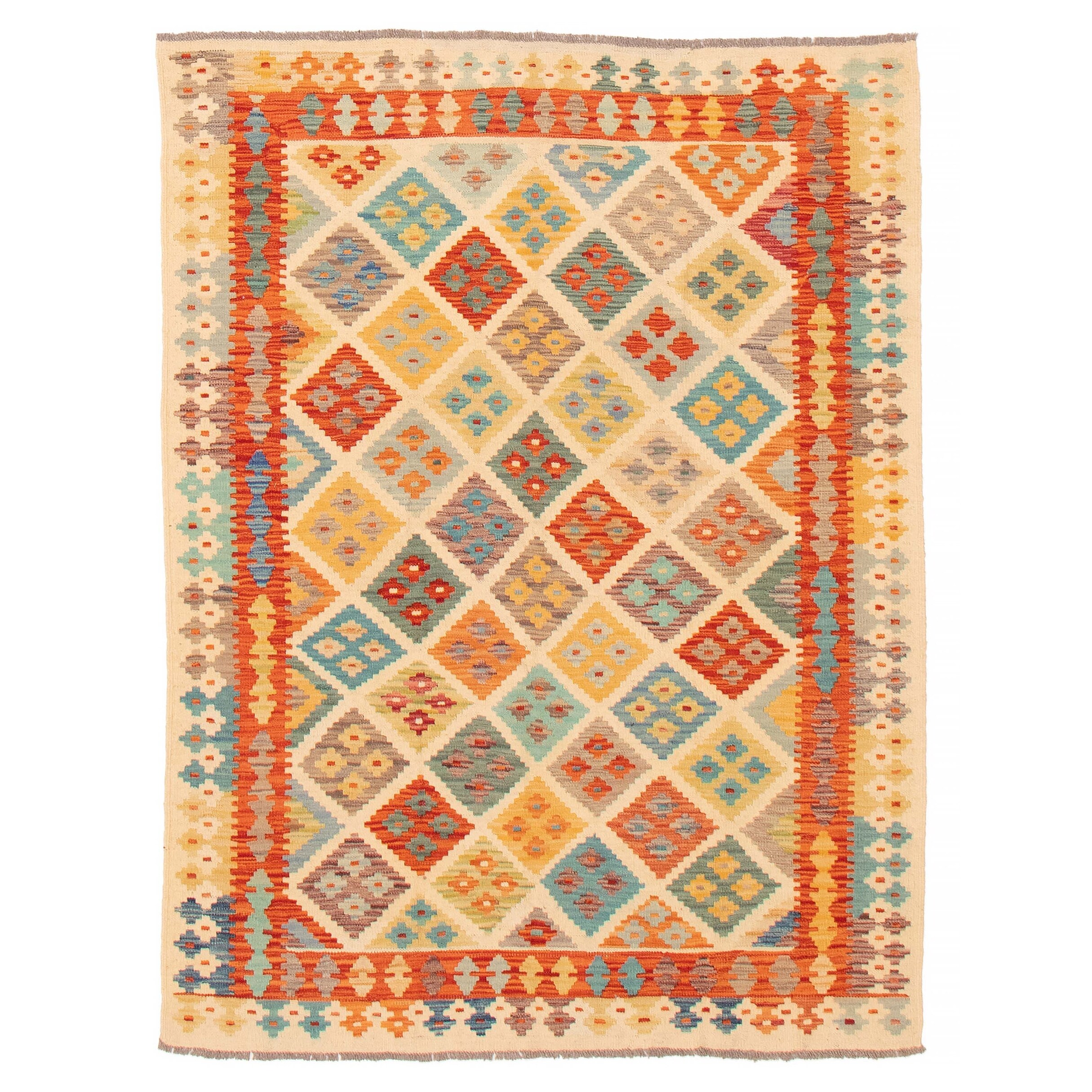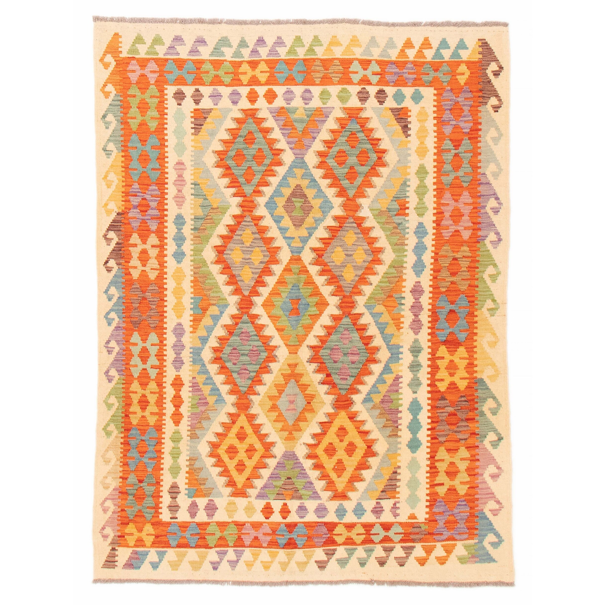 ECARPETGALLERY Flat-weave Bold and Colorful Cream Wool Kilim - 4'9 x 6'4