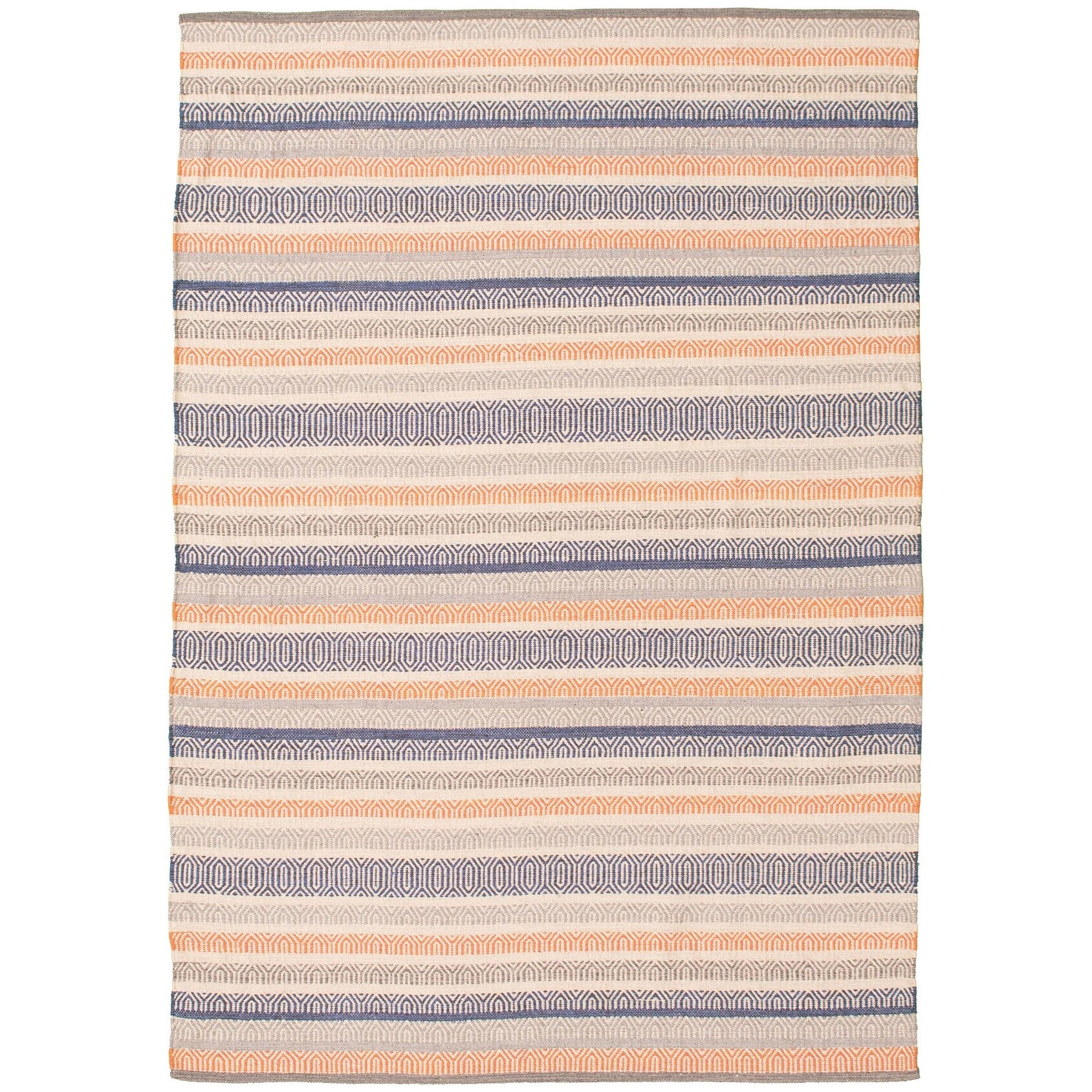 Flat-weave Bold and Colorful Cream, Navy Wool Kilim
