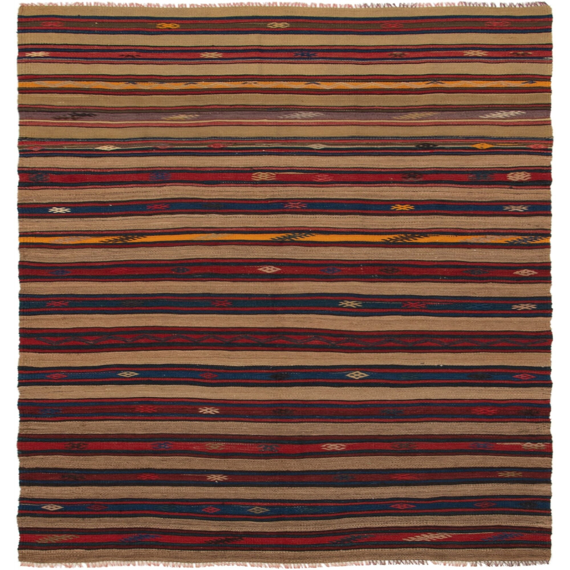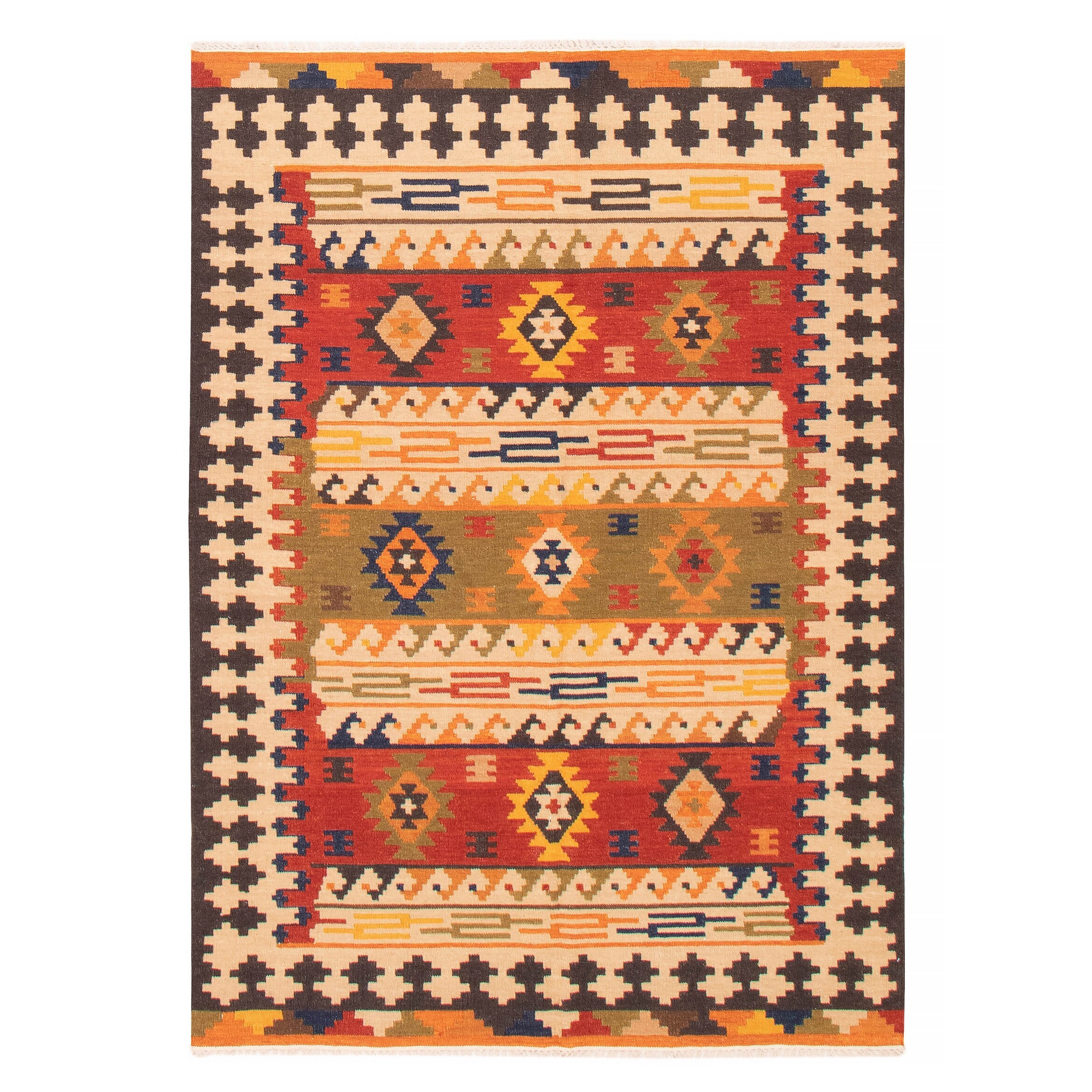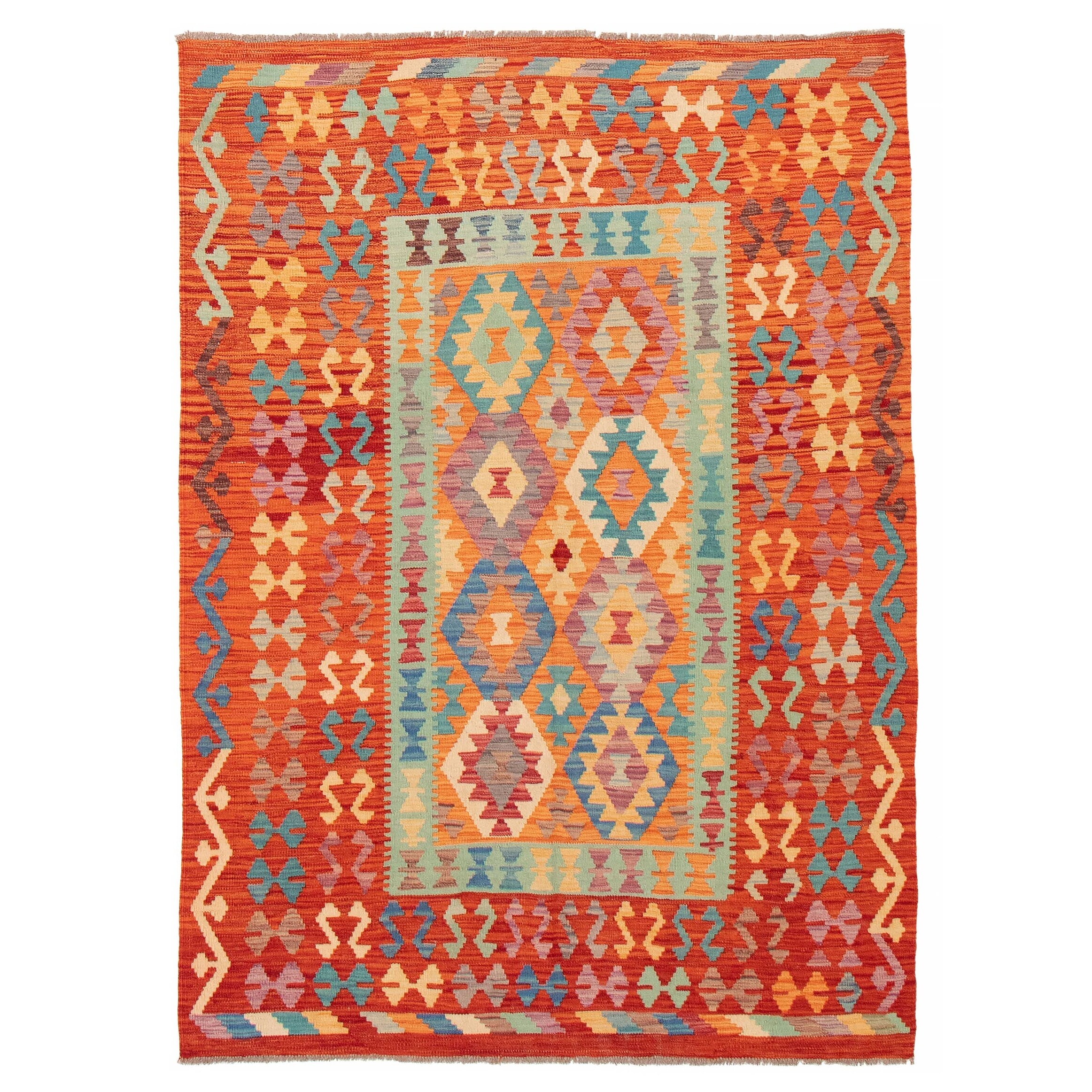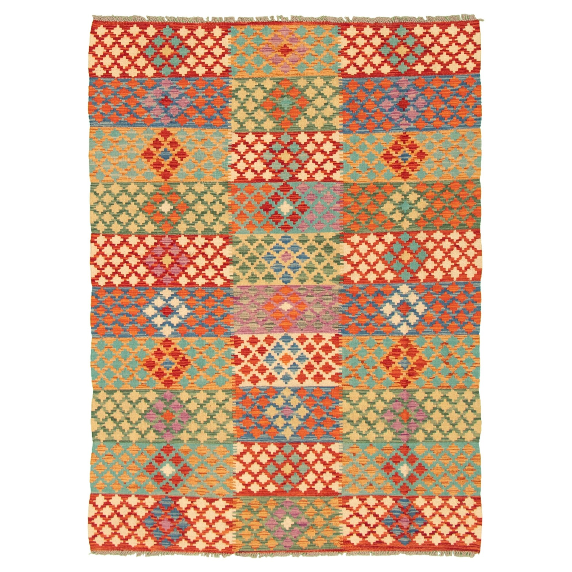 ECARPETGALLERY Flat-weave Bold and Colorful Multi Color Wool Kilim - 5'1 x 6'6