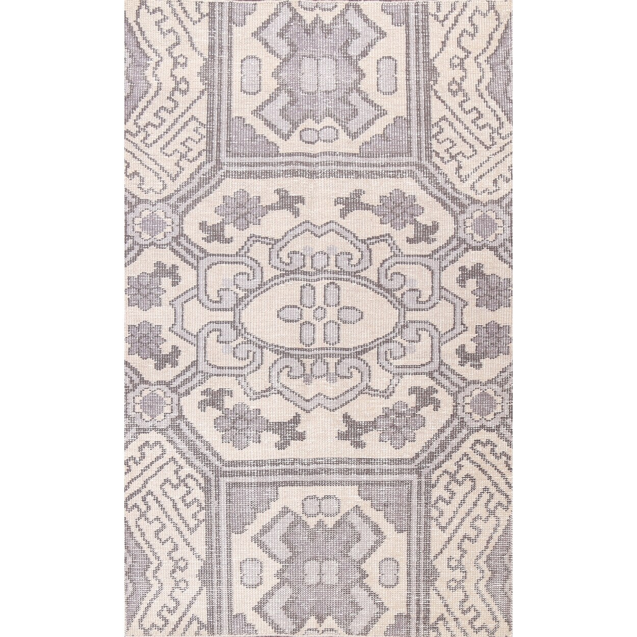 ECARPETGALLERY Flat-weave Shiravan SMK Ivory Wool Kilim - 4'5 x 6'0