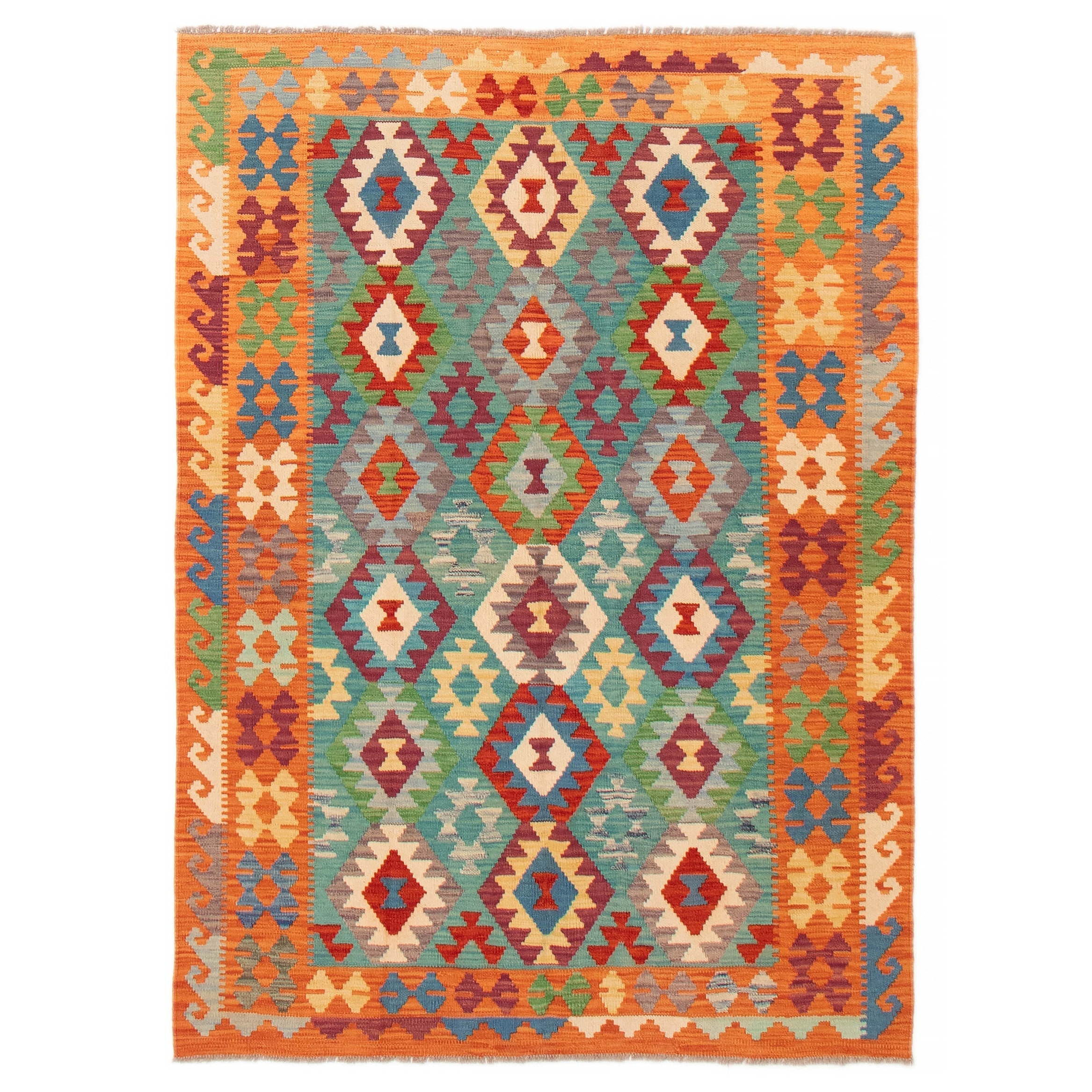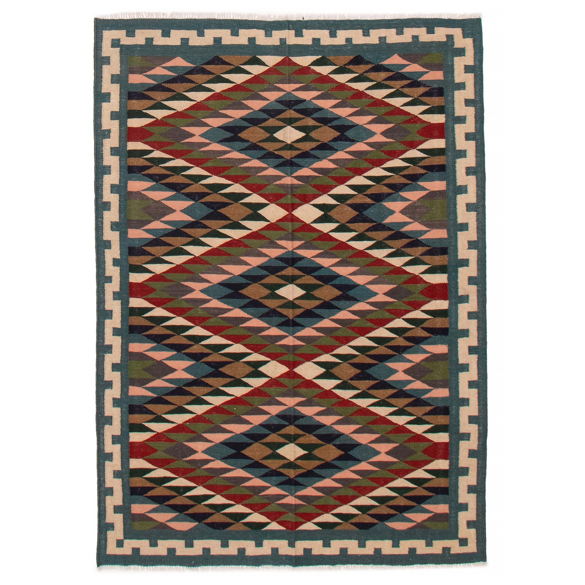 ECARPETGALLERY Flat-Weave Bold and Colorful Teal Wool Kilim - 4'11 x 6'7