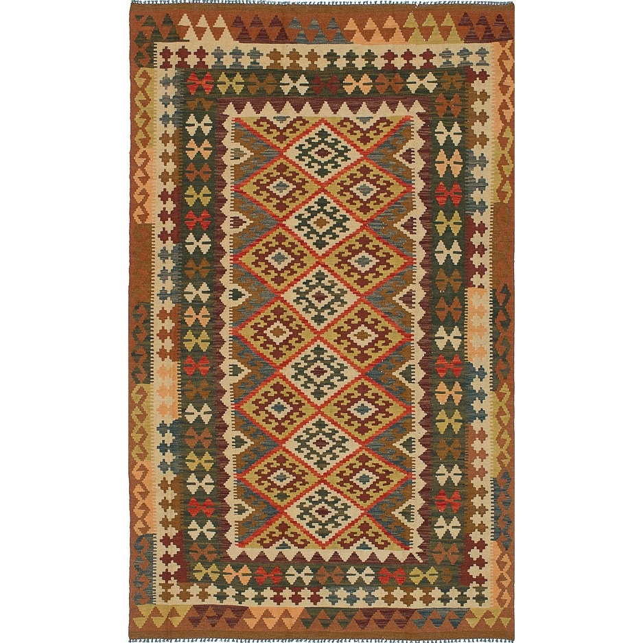 ECARPETGALLERY Flat-Weave Bold and Colorful Multi Color Wool Kilim - 5'0 x 6'6