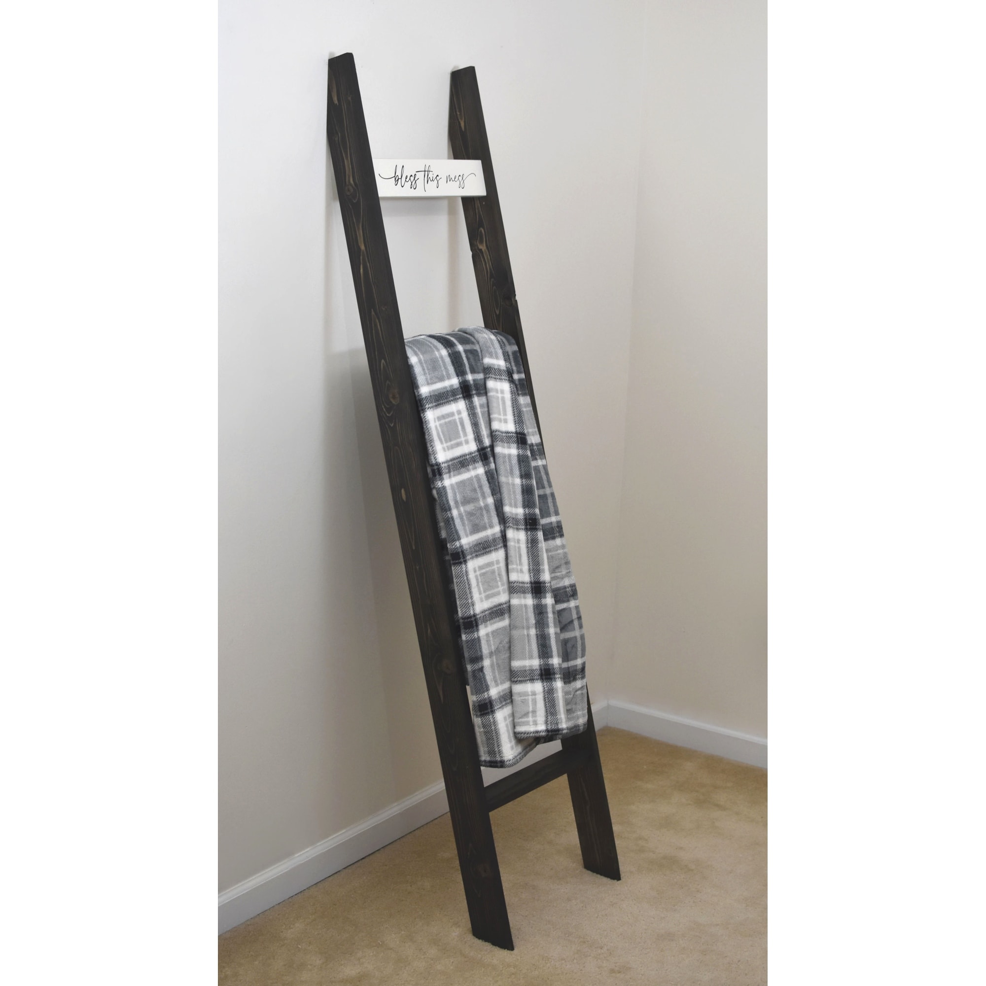 6ft Country Chic Blanket Ladder with Farmhouse Sign 'Bless this Mess' - Light Gray - 72 x 17 x 3