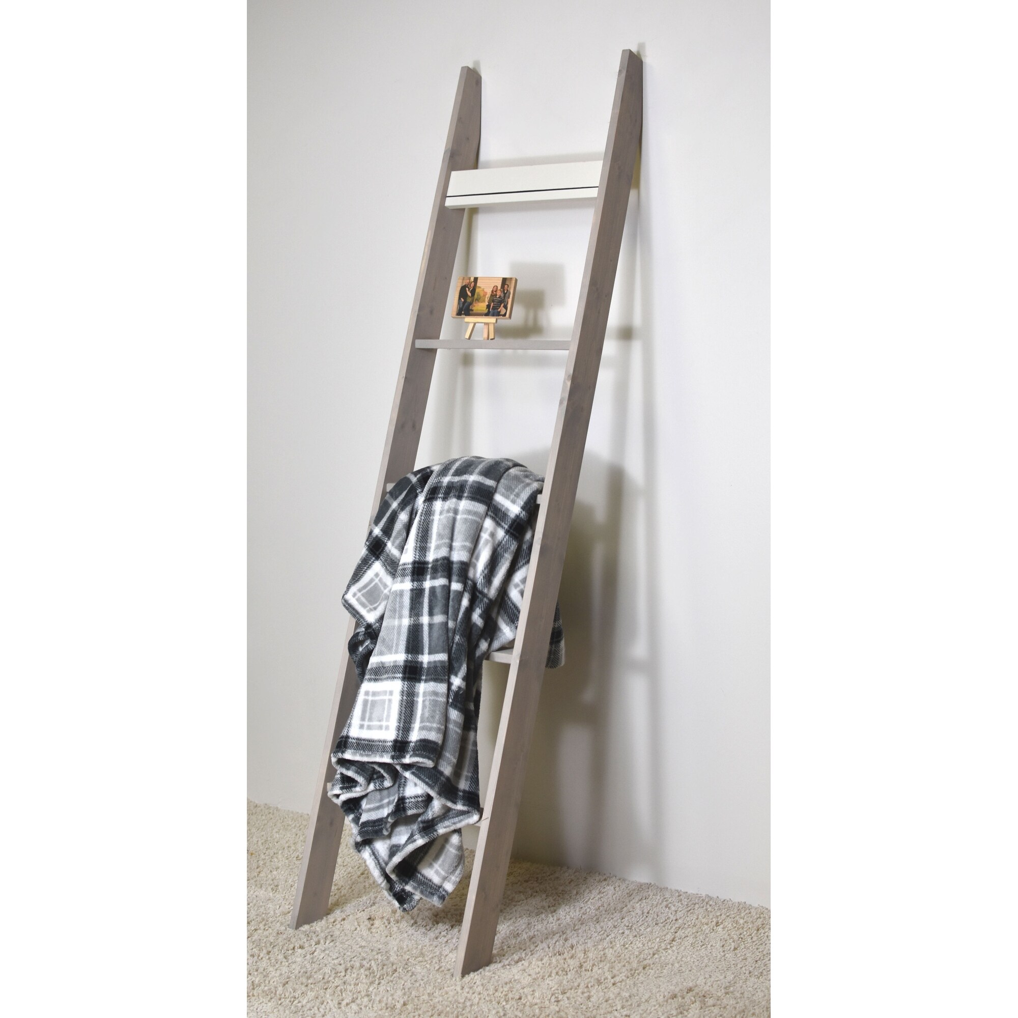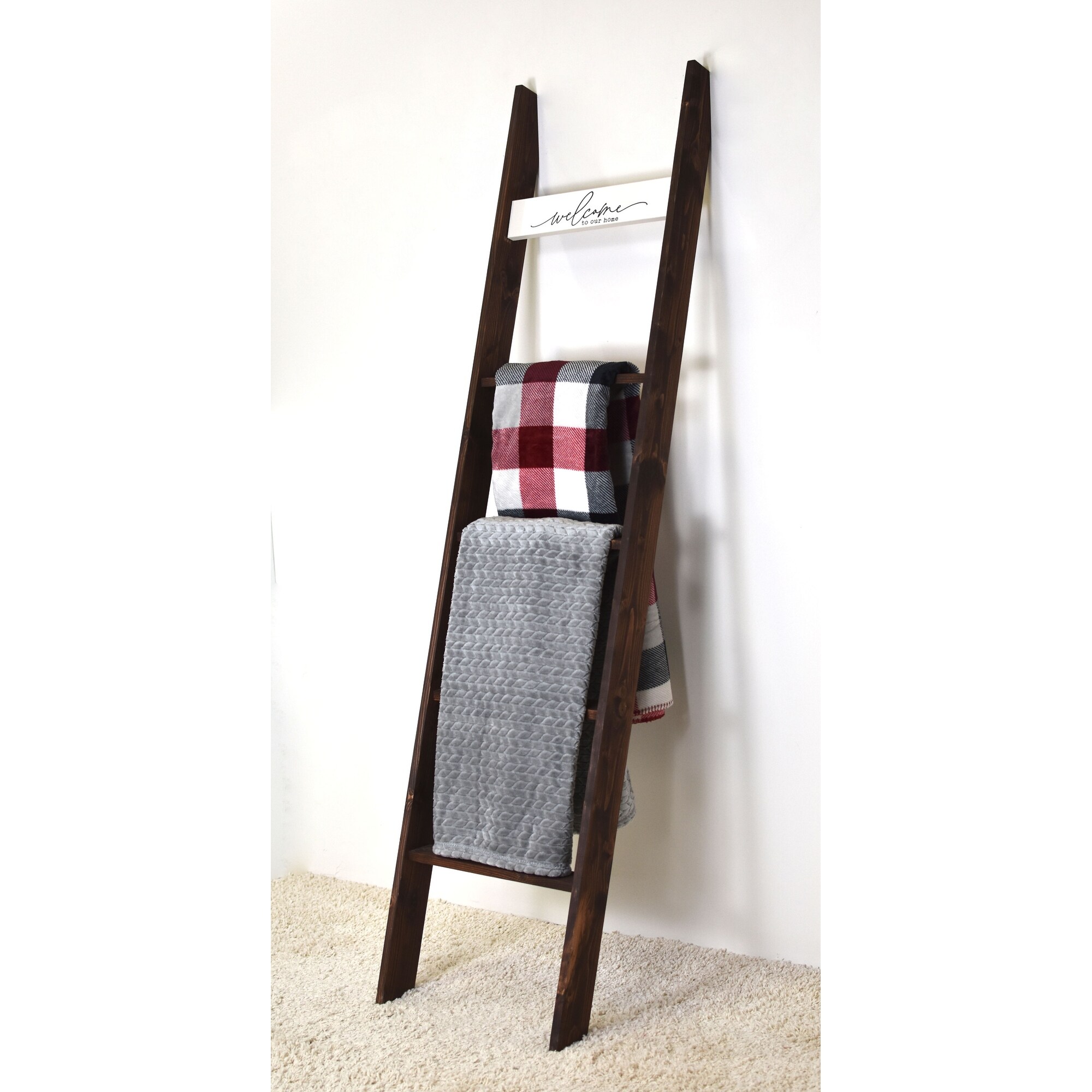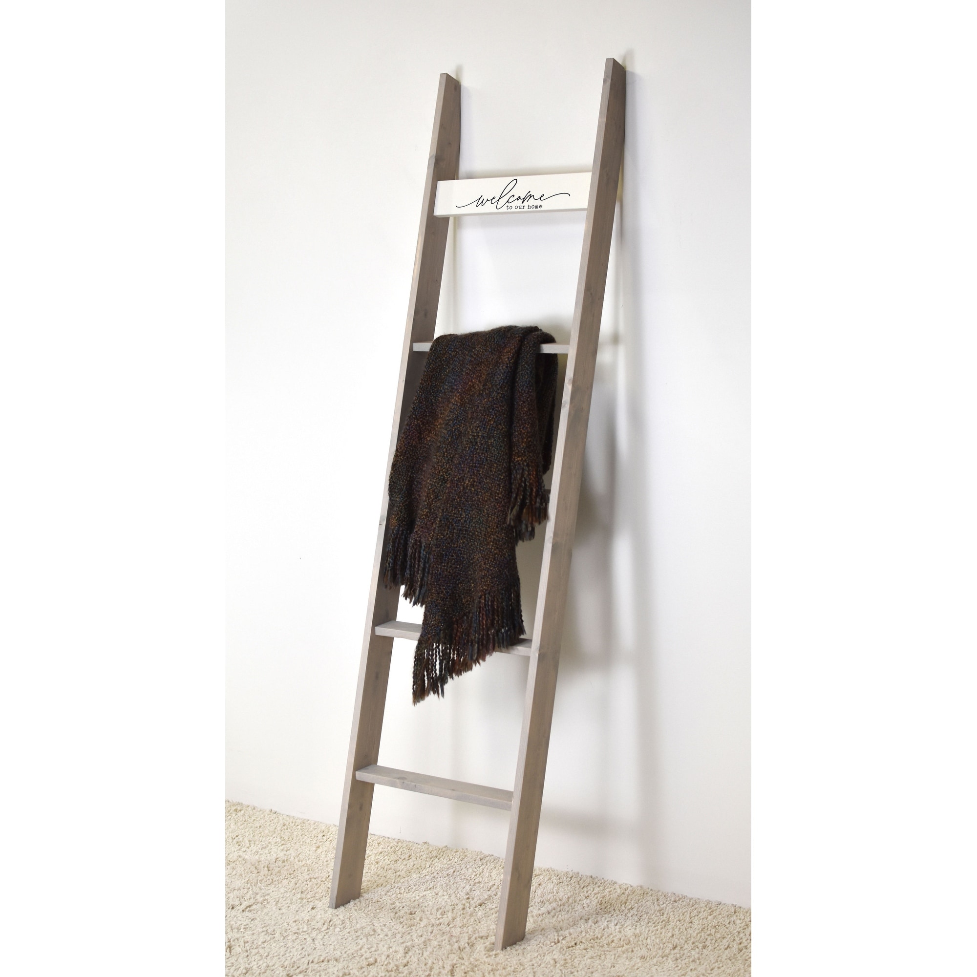 6ft Farmhouse Blanket Ladder with Farmhouse Sign 'Welcome to our home' - Light Gray - 72 x 17 x 3