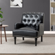 Leisure Pu Leather Accent Barrel Chair Curved Edges Livingroom Chair with Nailheads and Solid Wood Legs
