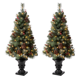 Set of 2 Pre-Lit Potted Flocked Western Spruce Artificial Christmas Trees 5'