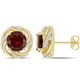 Miadora Yellow Gold Plated Sterling Silver Garnet & White Topaz Stud Earrings