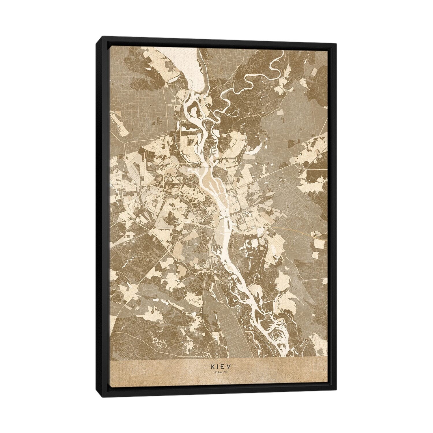iCanvas "Sepia Map of Kiev in Vintage Style" by blursbyai Framed