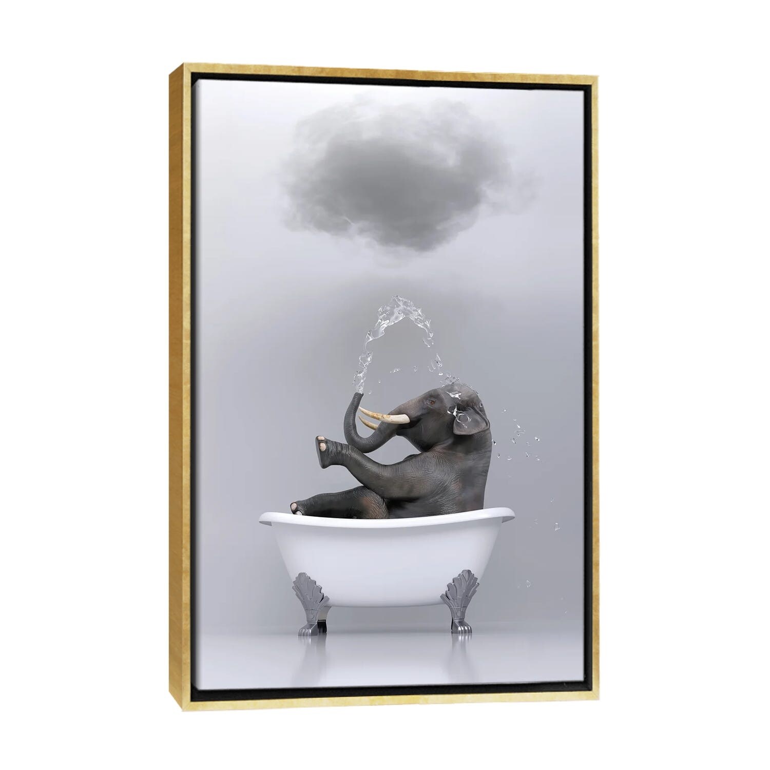 iCanvas "elephant relaxing in the bath" by Mike Kiev Framed