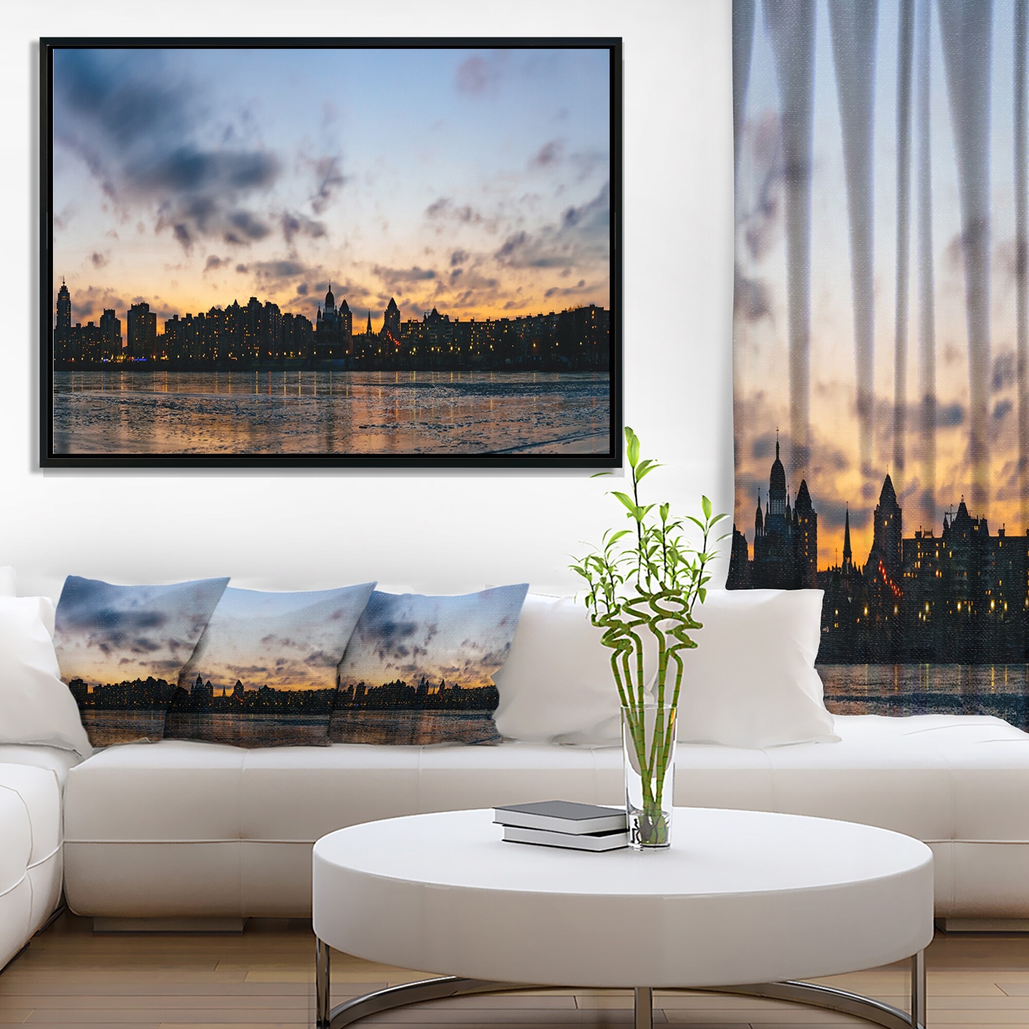 Designart "Sunset with Clouds in Kiev Panorama" Cityscape Framed Canvas Art Print