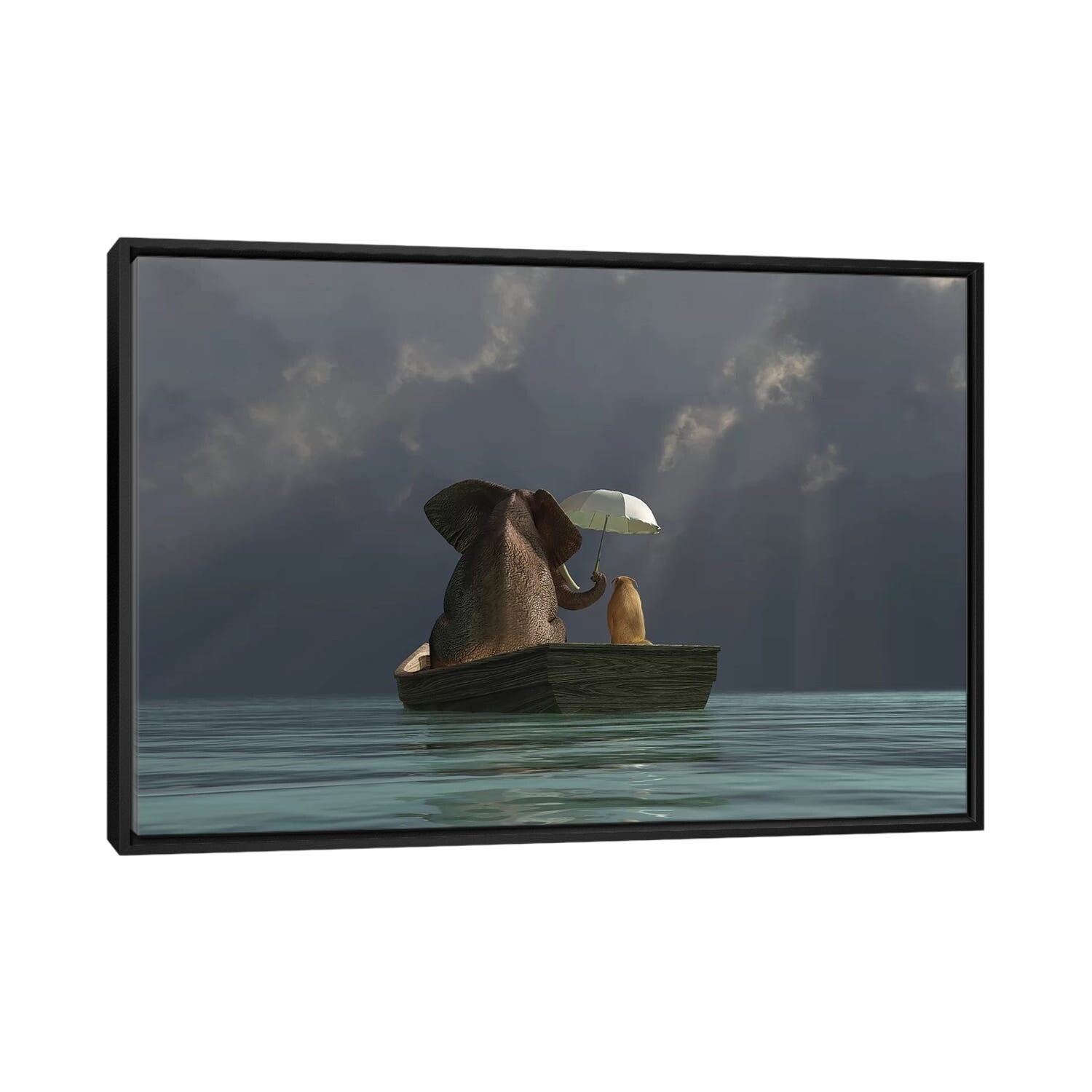 iCanvas "Elephant And Dog Are Floating in A Boat II" by Mike Kiev Framed