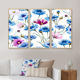 Designart "Blue and Pink Wild Cornflowers" Traditional Framed Wall Decor Set of 3 - 4 Colors of Frames