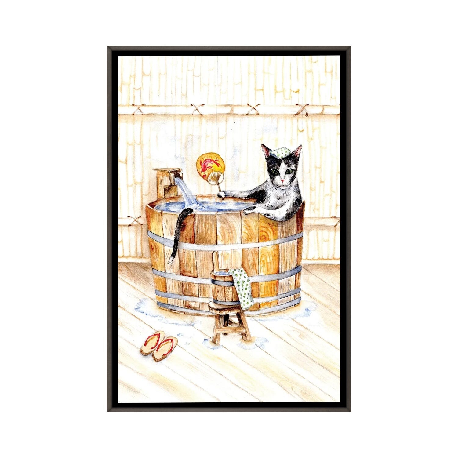 iCanvas "Cat In Japanese Bath Onsen" by Goosi Framed