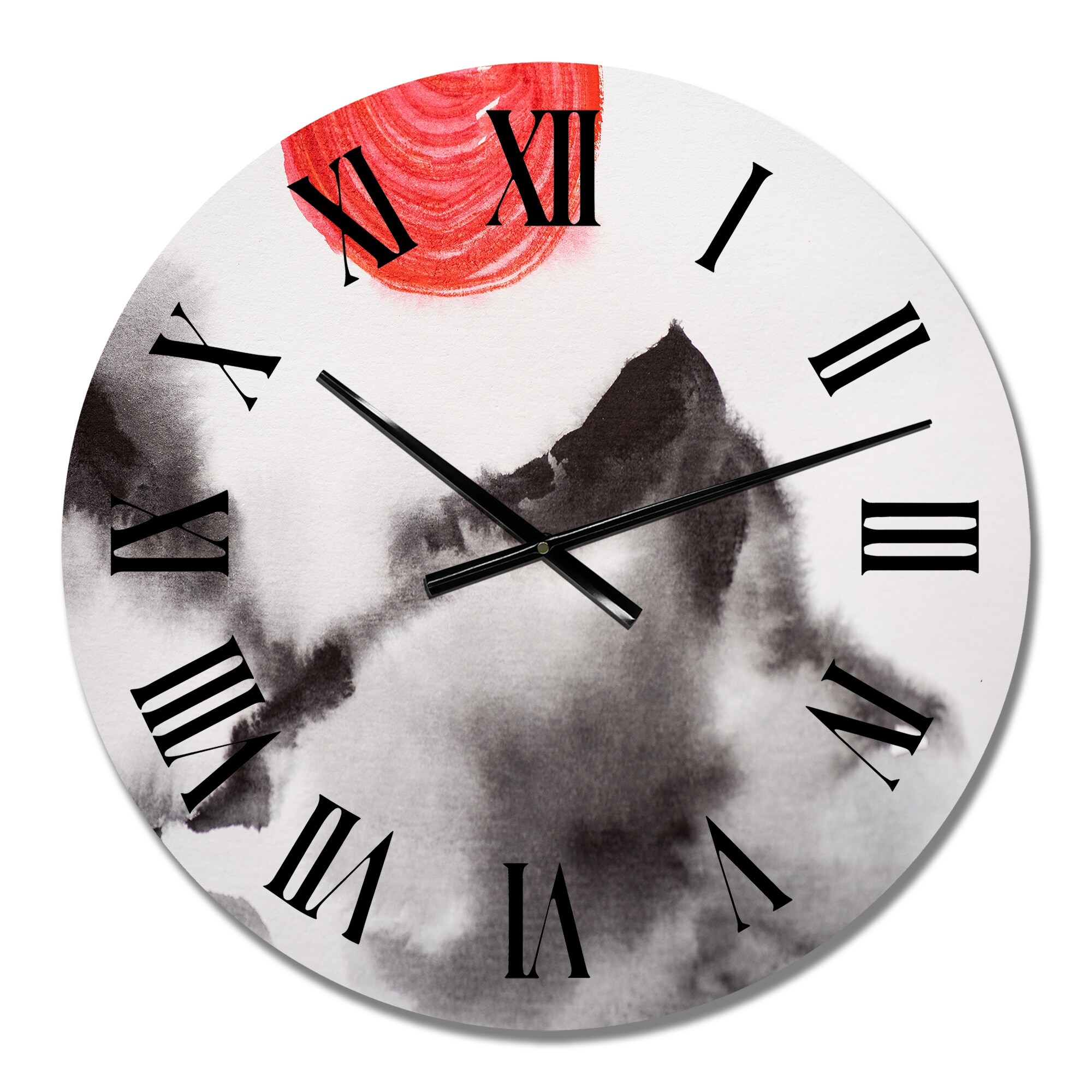 Designart 'Japanese With Hills And Red Sun' Traditional wall clock