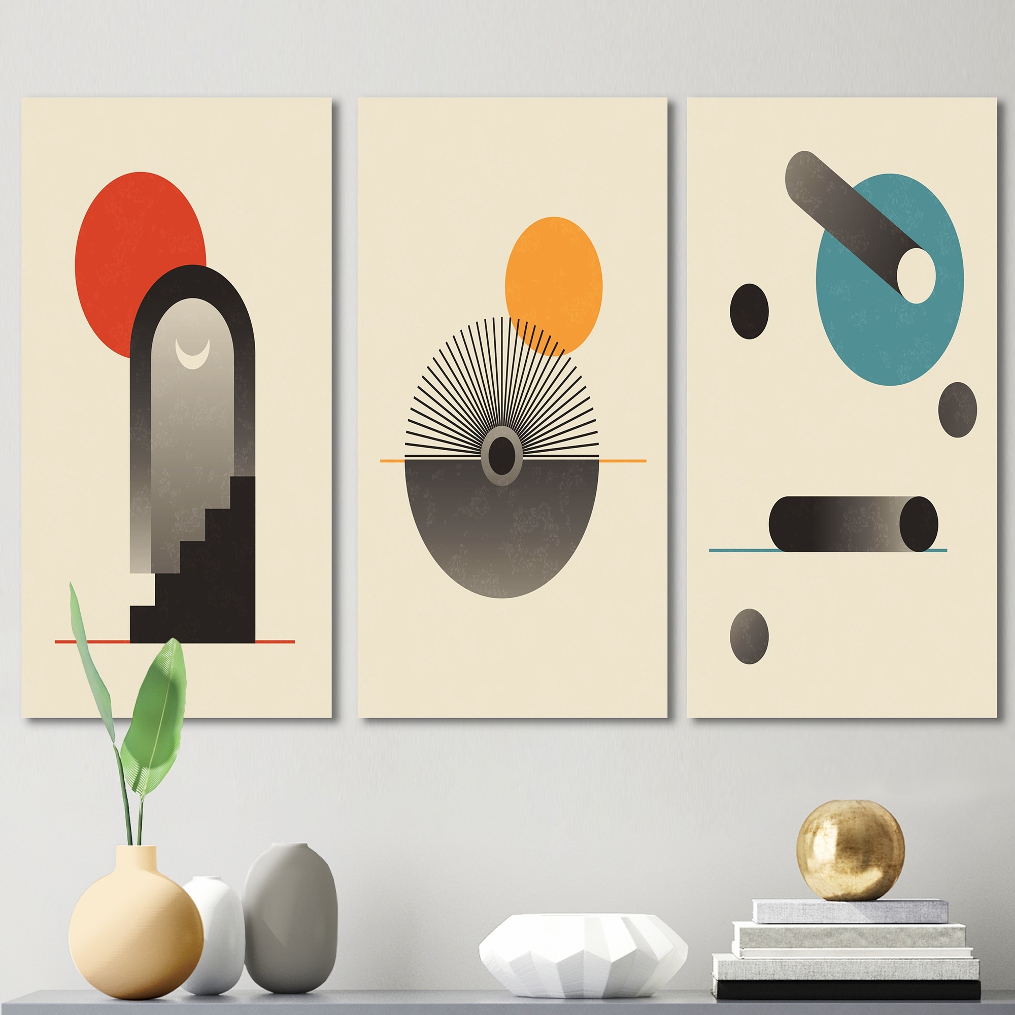 Designart 'Minimalistic Japanese Geometric Vintage Designs II' Mid-Century Modern Art Set of 3 Pieces