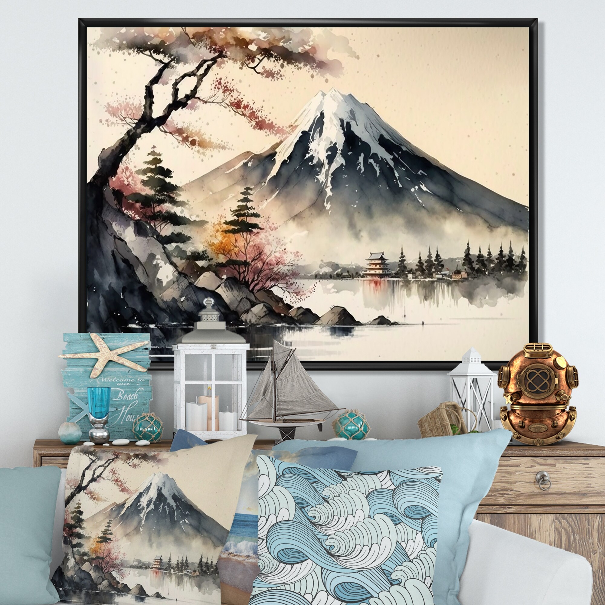 Designart "Japanese Landscape in Watercolor II" Landscape Framed Canvas Art Print