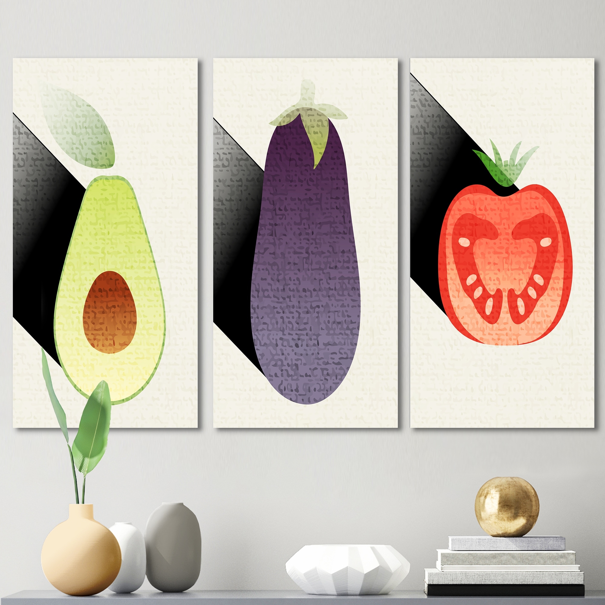 Designart 'Organic Vintage Japanese Vegetables II' Modern & Contemporary Art Set of 3 Pieces