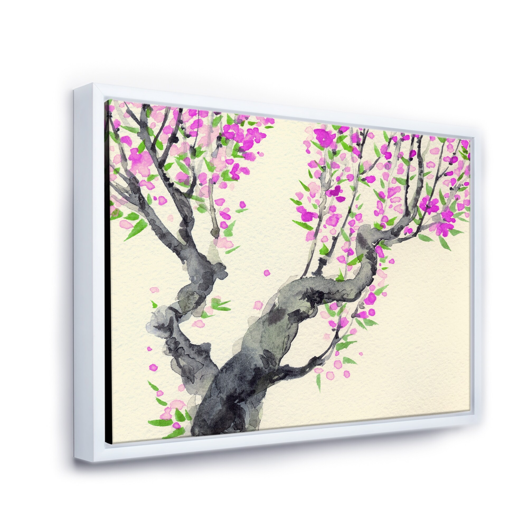 Designart "Purple Flowers on Japanese the Tree" Traditional Framed Canvas Wall Art Print