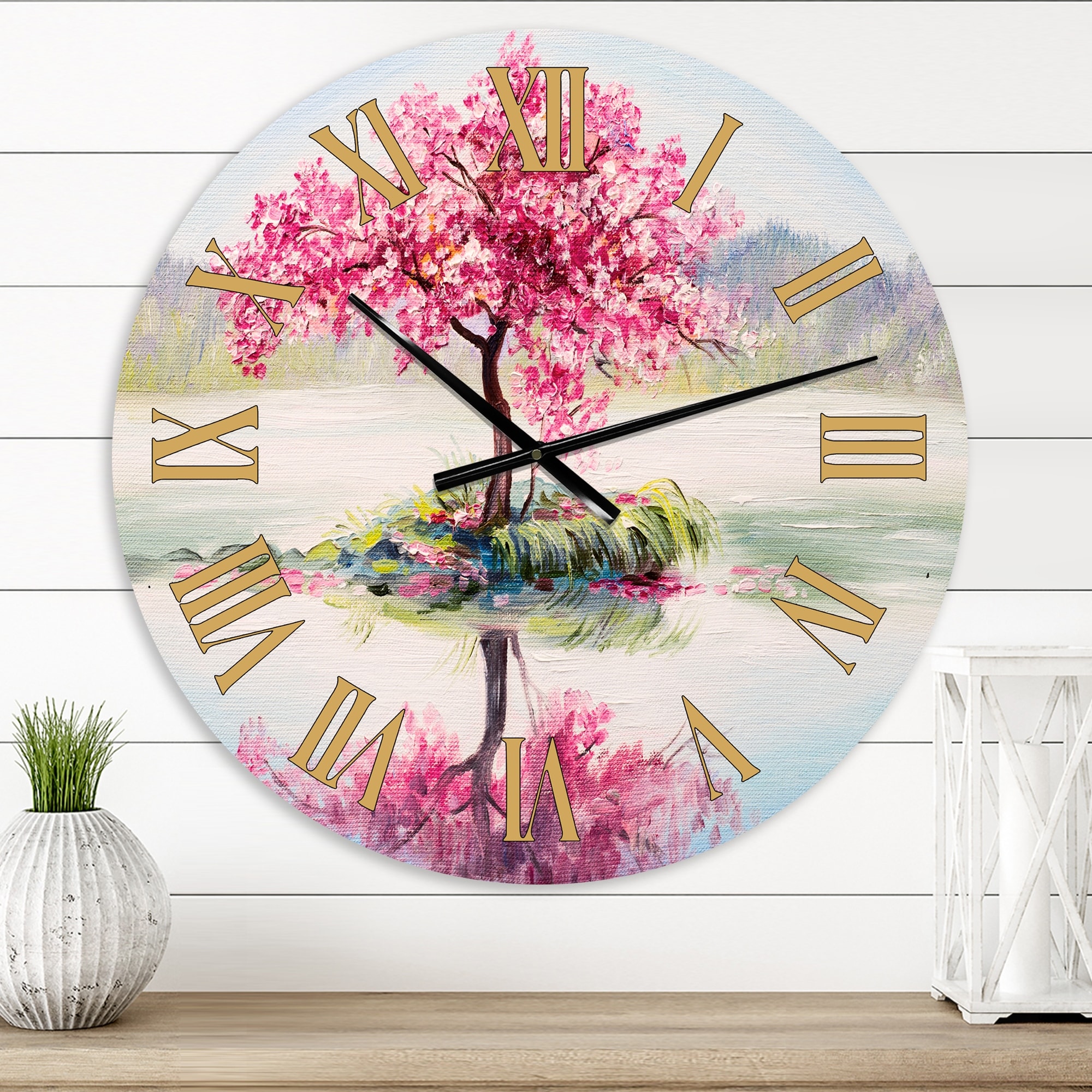 Designart 'Japanese Cherry Blossom Tree on Little Idyllic IsLand' Farmhouse wall clock
