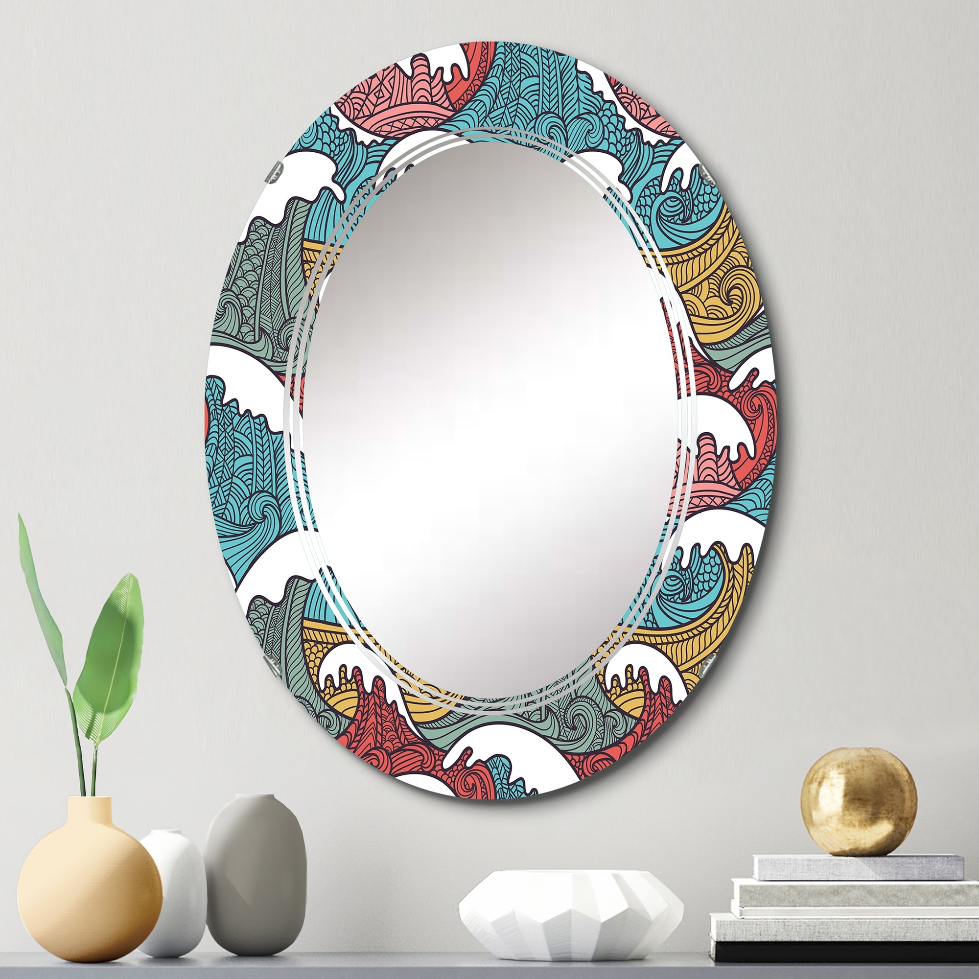 Designart 'Red Blue And Grey Japanese Waves' Nautical & Coastal Printed Wall Mirror
