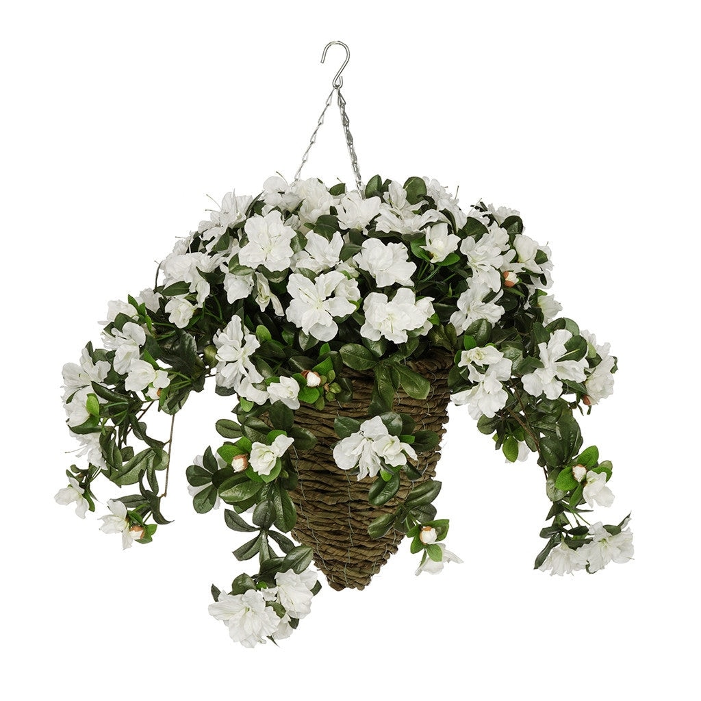 Faux White Azalea Hanging Basket