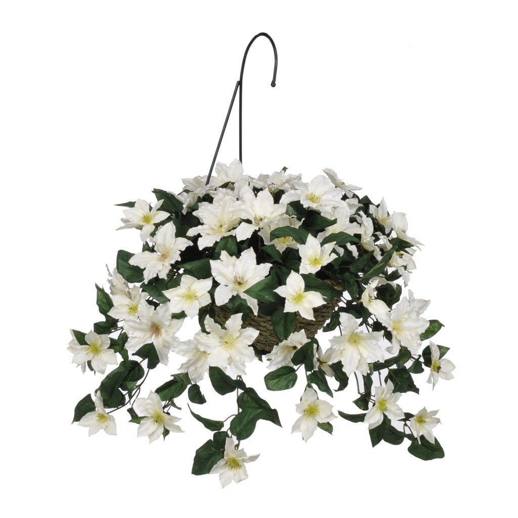 Faux Cream Clematis Hanging Basket