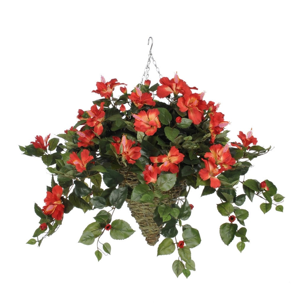 Faux Orange Hibiscus Hanging Basket