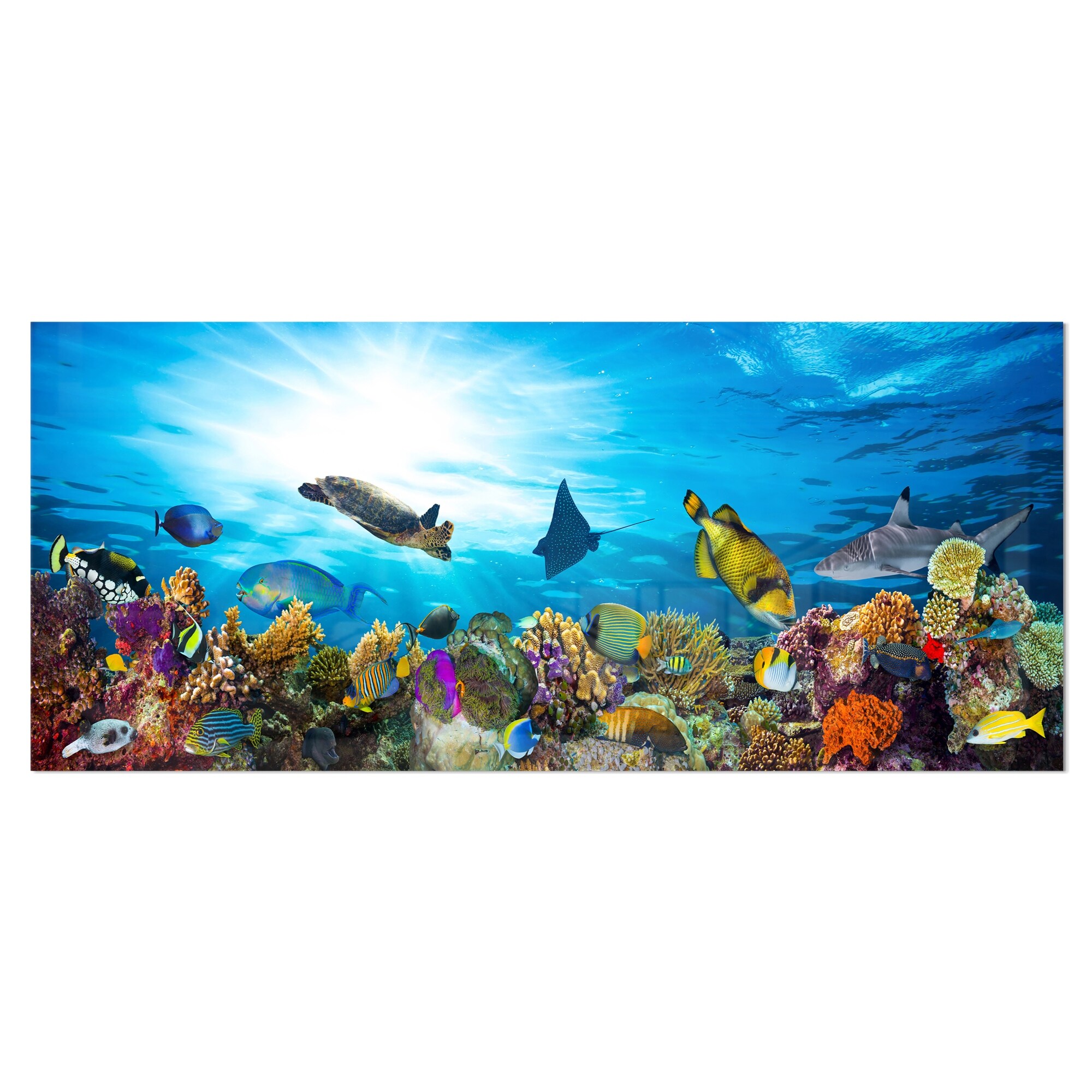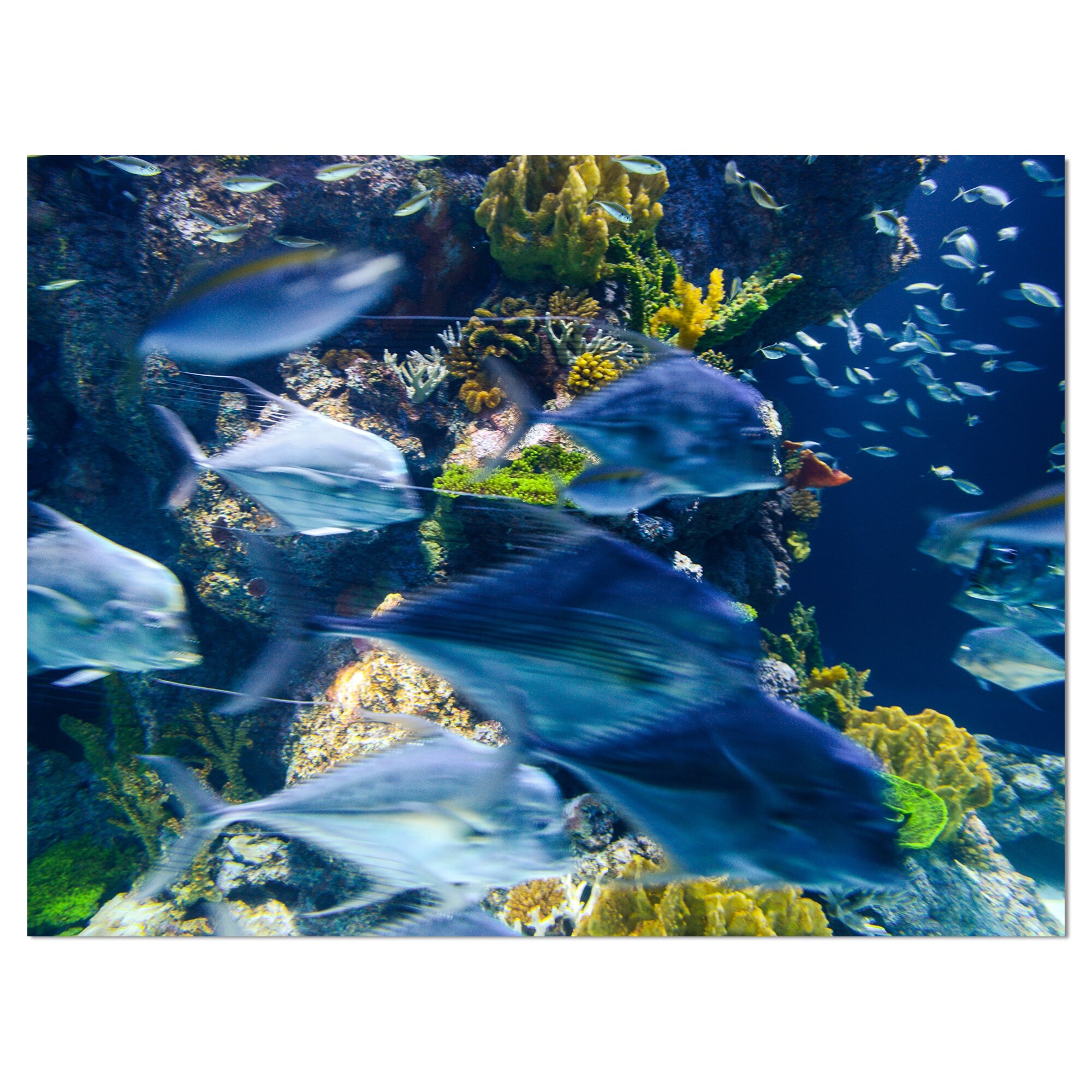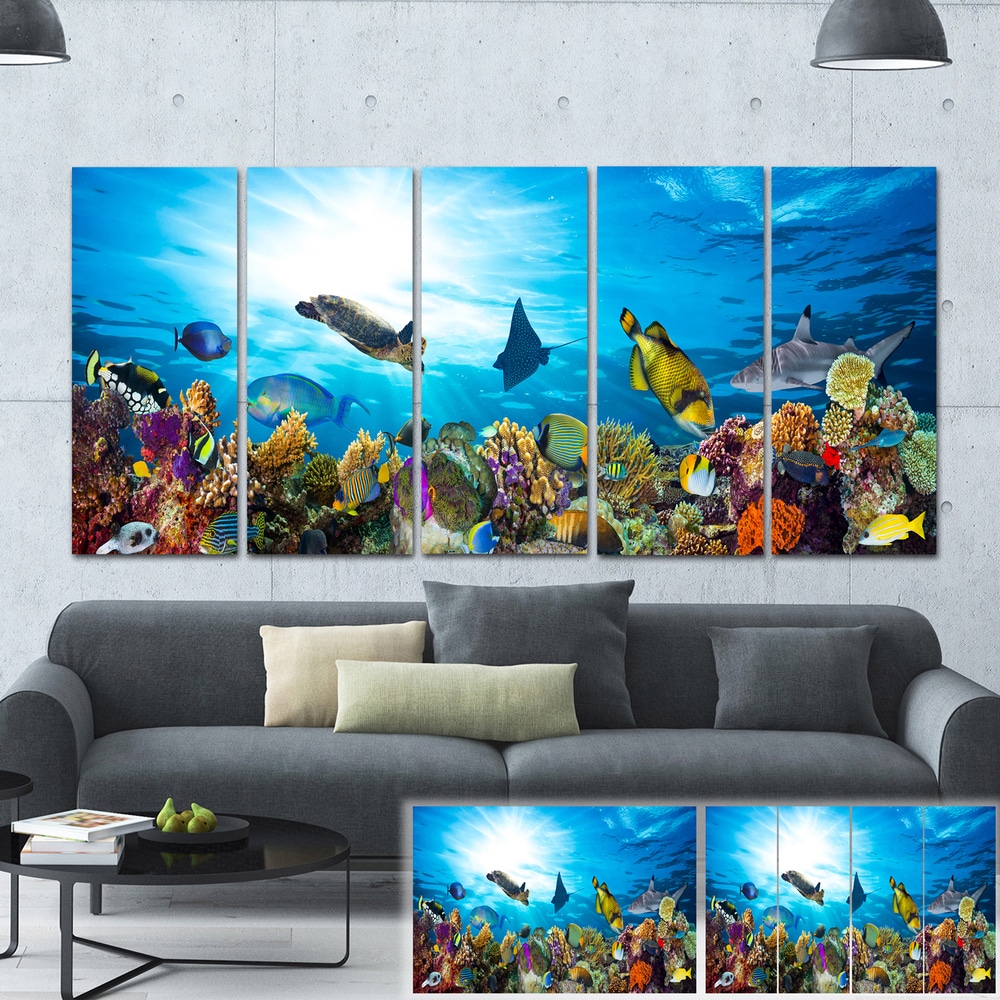 Designart "Coral Reef With Different fish Swimming" Sea & Shore Nautical Photographic on wrapped Canvas