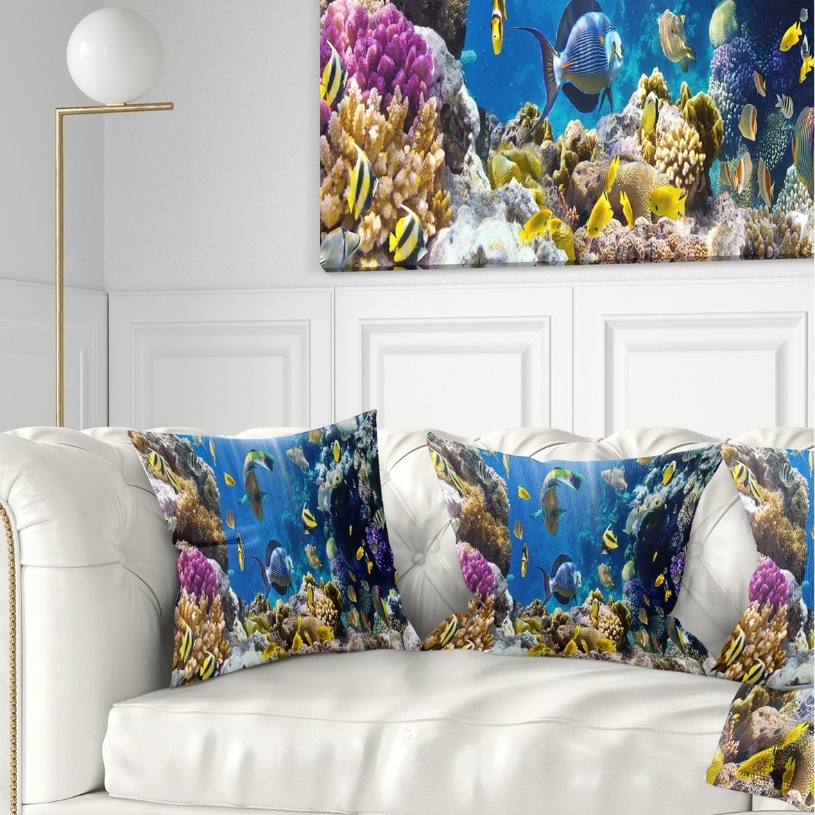 Designart 'Fish in Coral Reef' Seascape Photography Throw Pillow