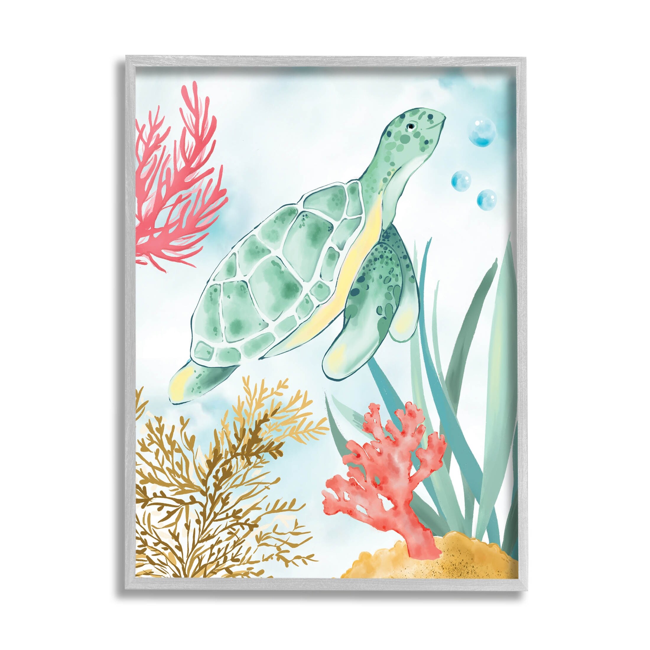 Stupell Turtle Coral Reef Bubbles Framed Giclee Art, Design by House of Rose