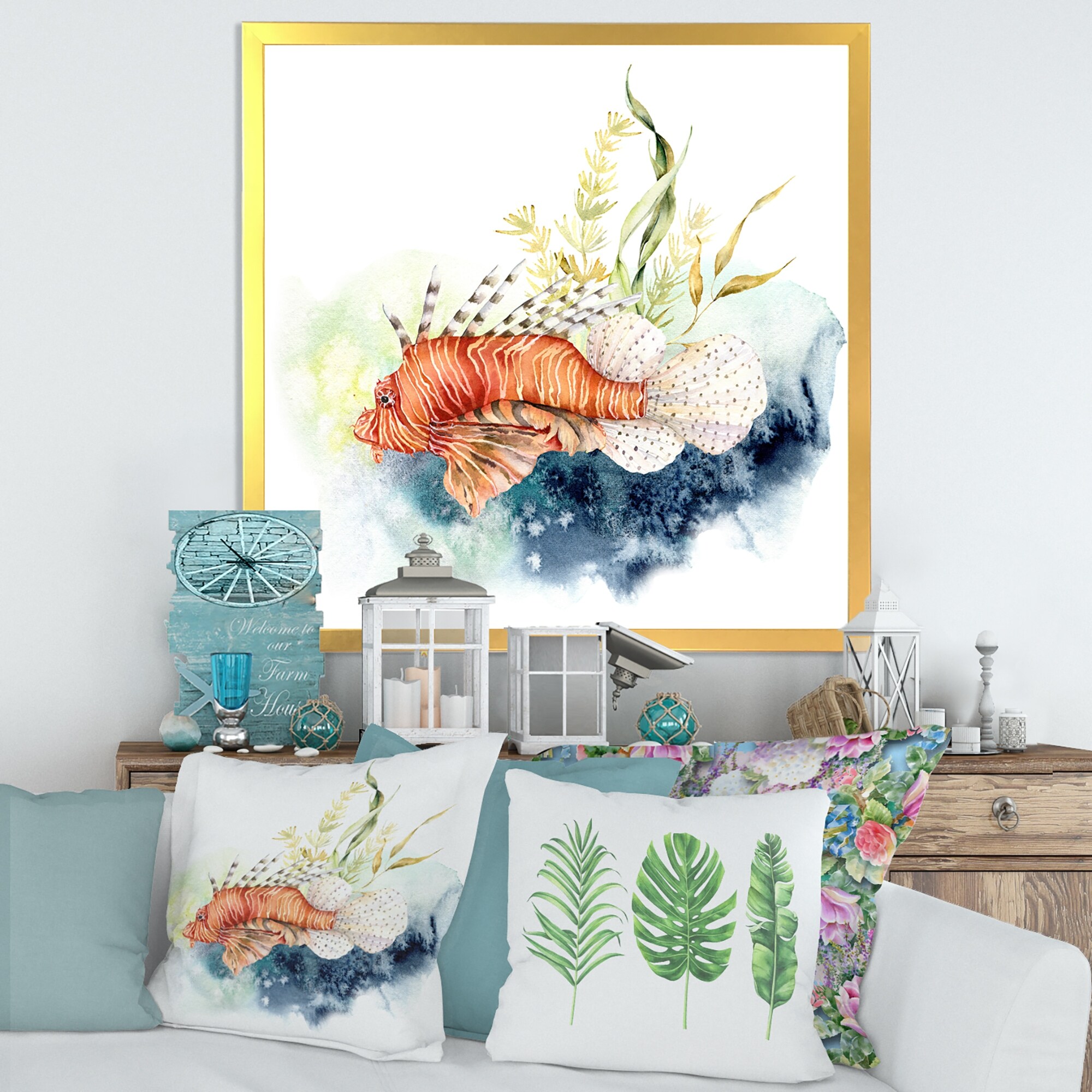 Designart "Lionfish and Kelp With Coral Reef and Laminaria" Nautical & Coastal Framed Art Print