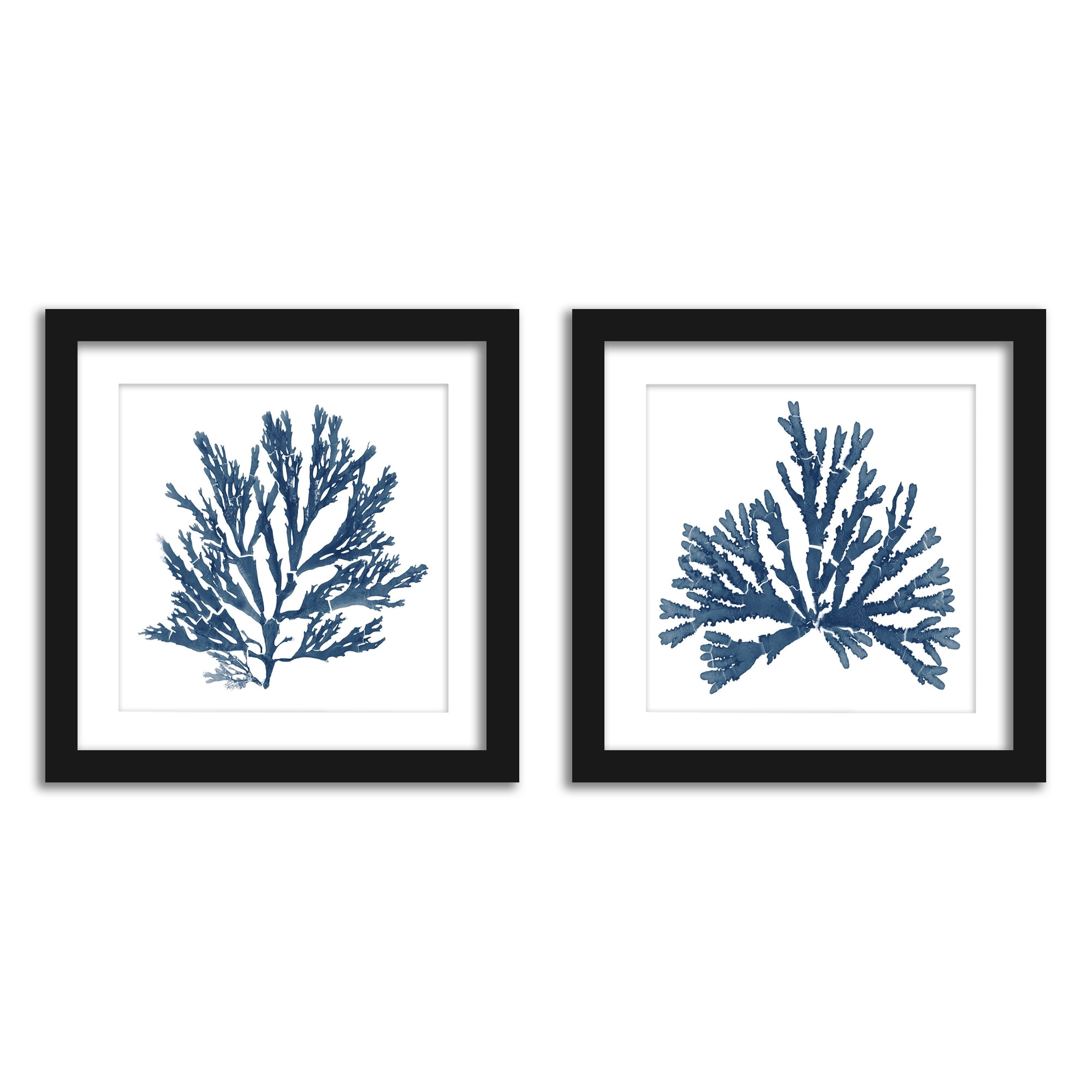 Coral Reef in Indigo By Wild Apple 2 Piece Framed Print Wall Art Set