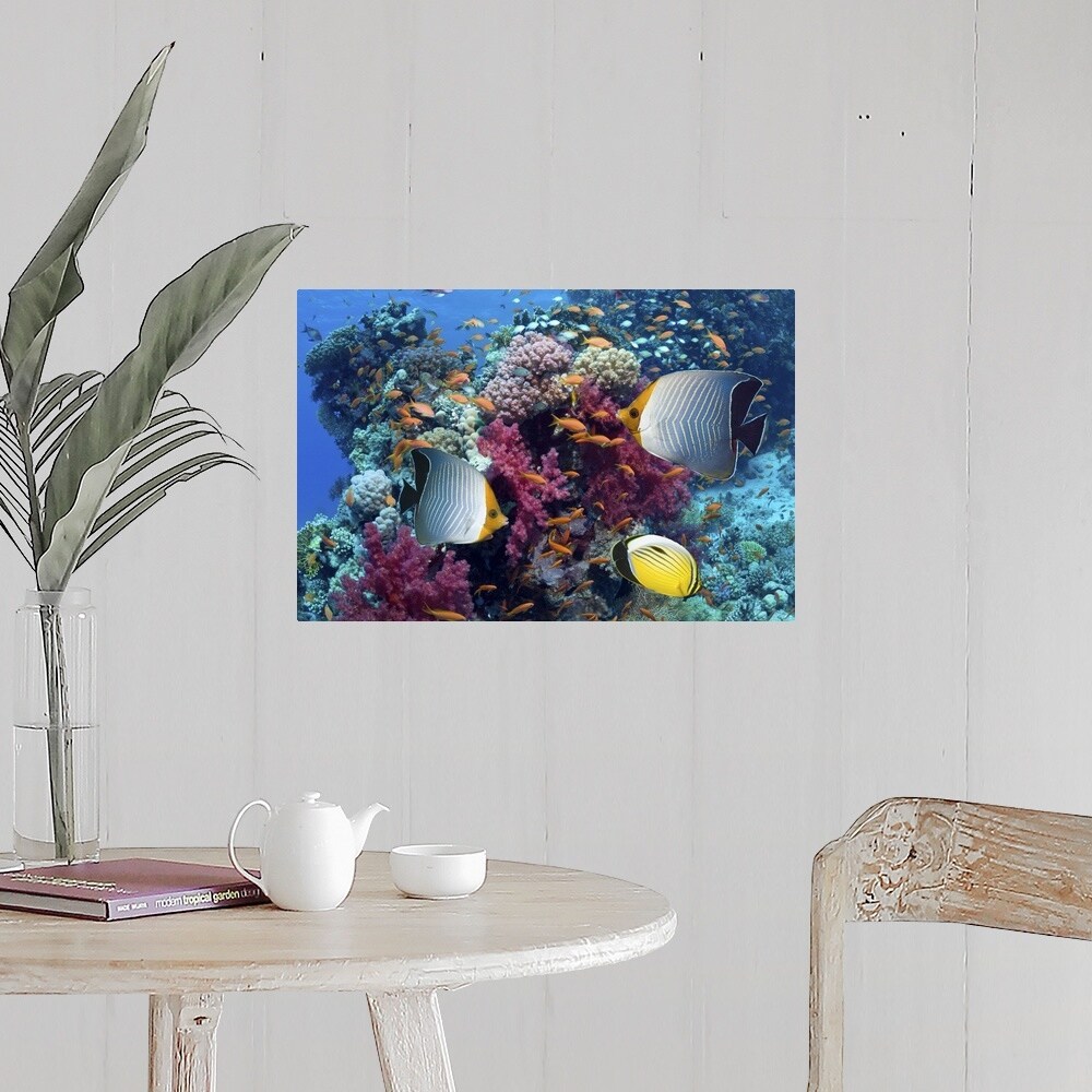 Easy Art Prints Panoramic Images's 'Coral Reef and School of Fish, Undersea view' Premium Canvas Art