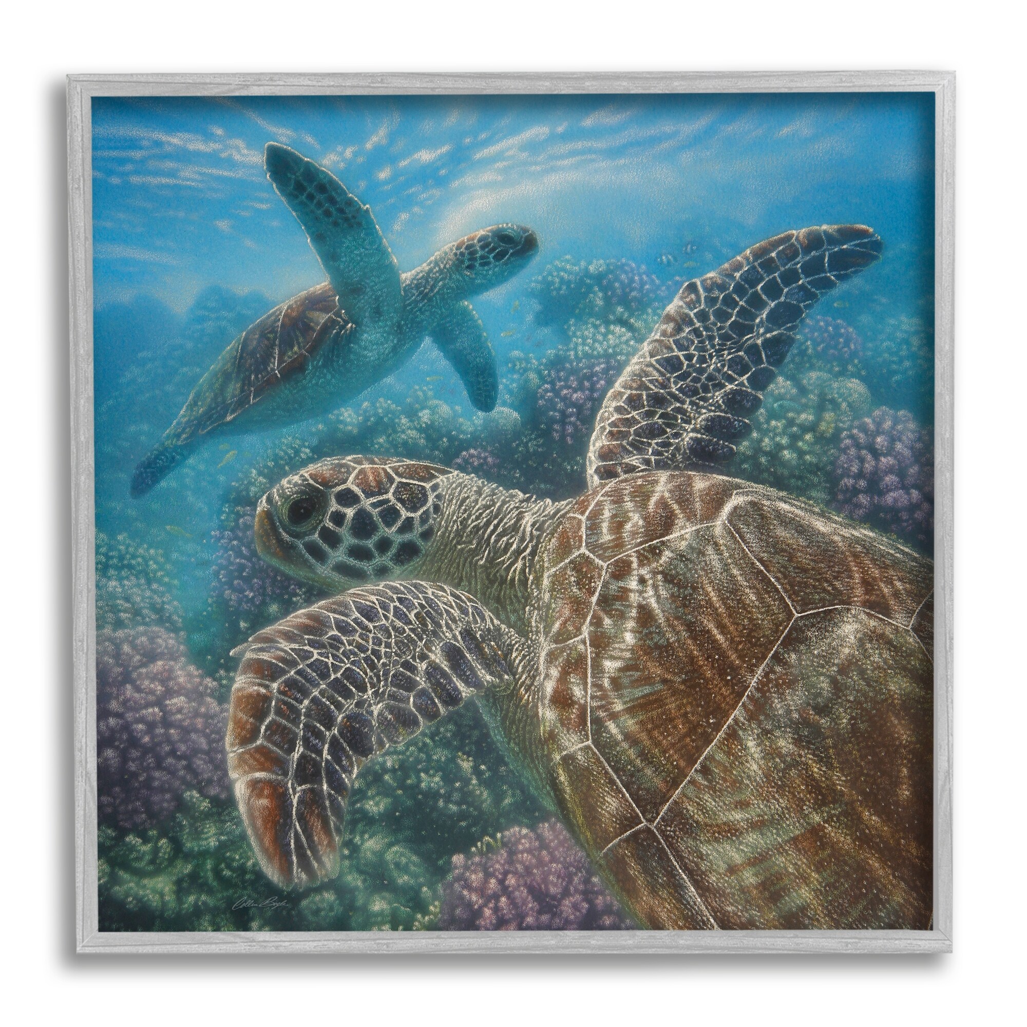 Stupell Sea Turtle Pair Coral Reef Ocean Life Scene Framed Wall Art
