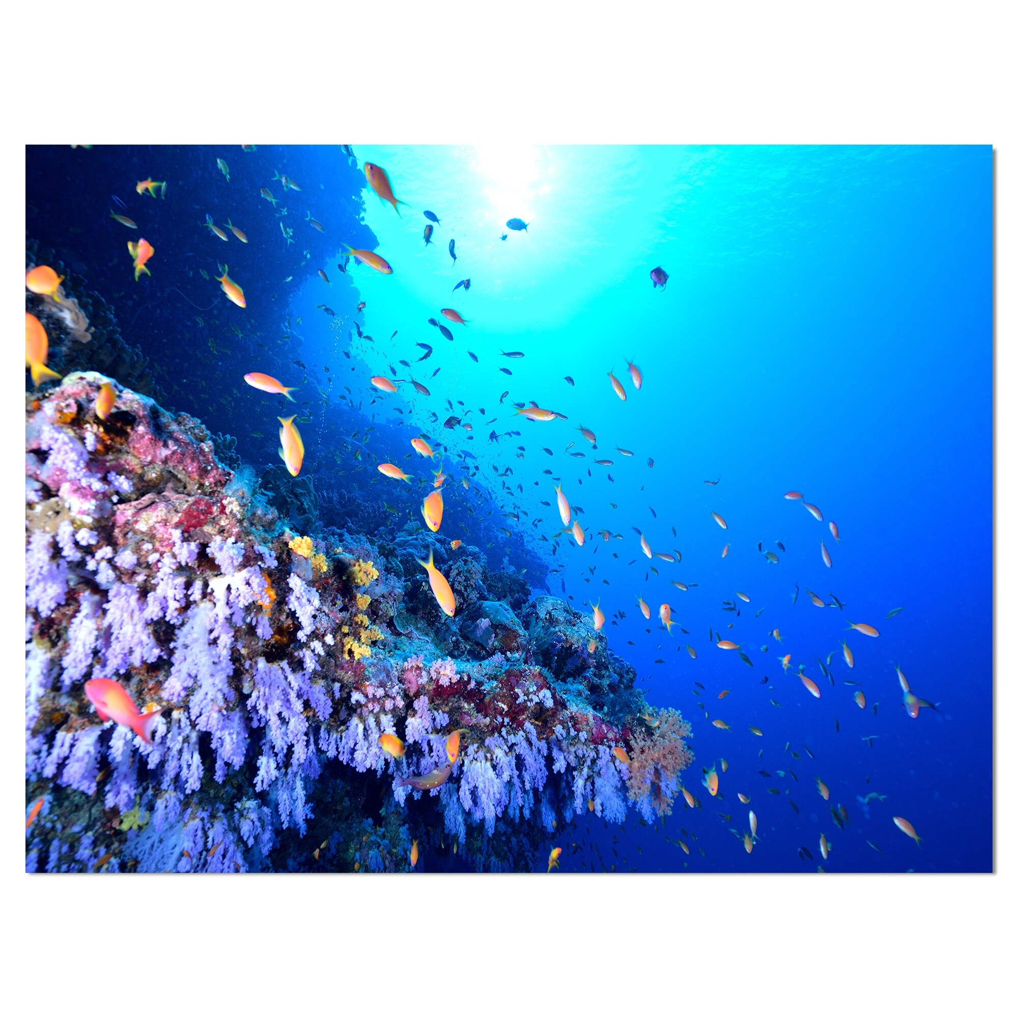 Designart "Colorful Coral Reef with Fishes" Seascape Photo Canvas Print