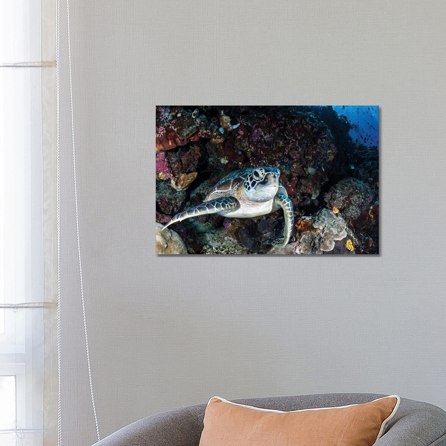 iCanvas "A Turtle Rests on A Ledge on A Coral Reef, North Sulawesi, Indonesia" by Brook Peterson Canvas Print