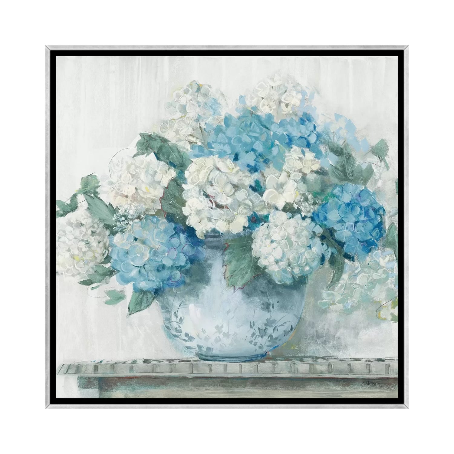 iCanvas "Blue Hydrangea Cottage Crop" by Carol Rowan Framed